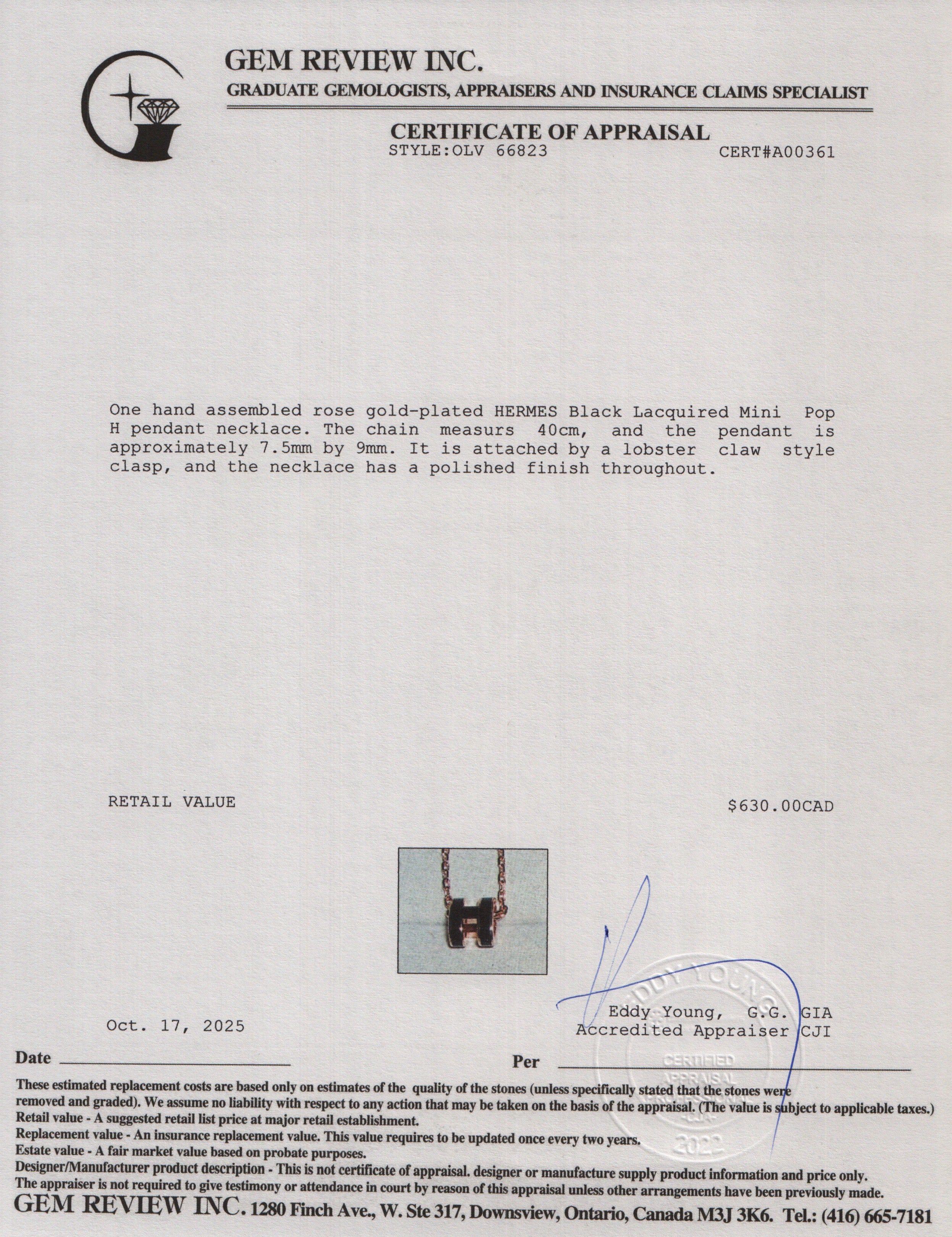 Rose Gold-Plated Black Lacquered Mini Pop H Pendant Necklace