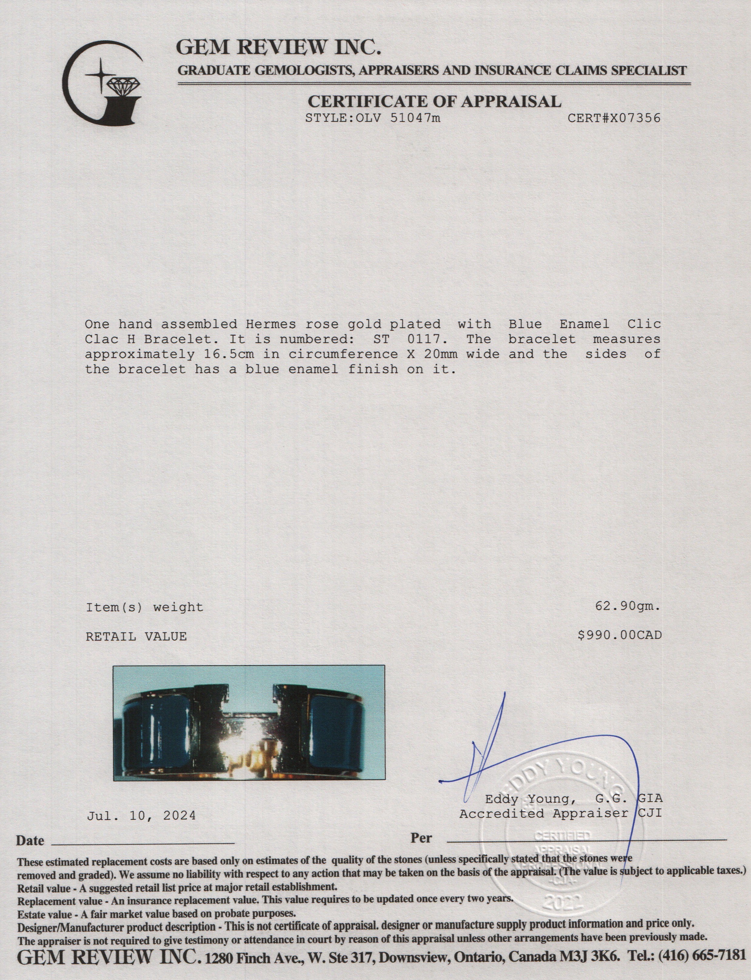 Rose Gold-Plated Blue Enamel Clic Clac H Bracelet