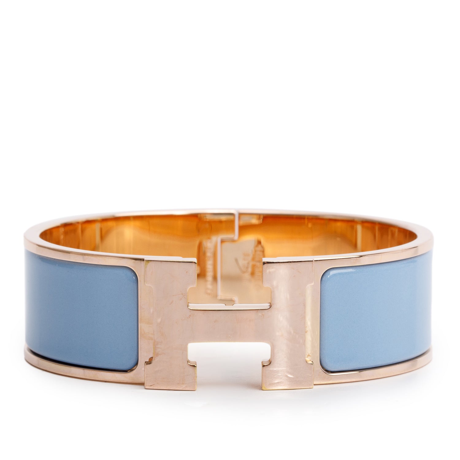 Rose Gold-Plated Blue Enamel Clic Clac H Bracelet
