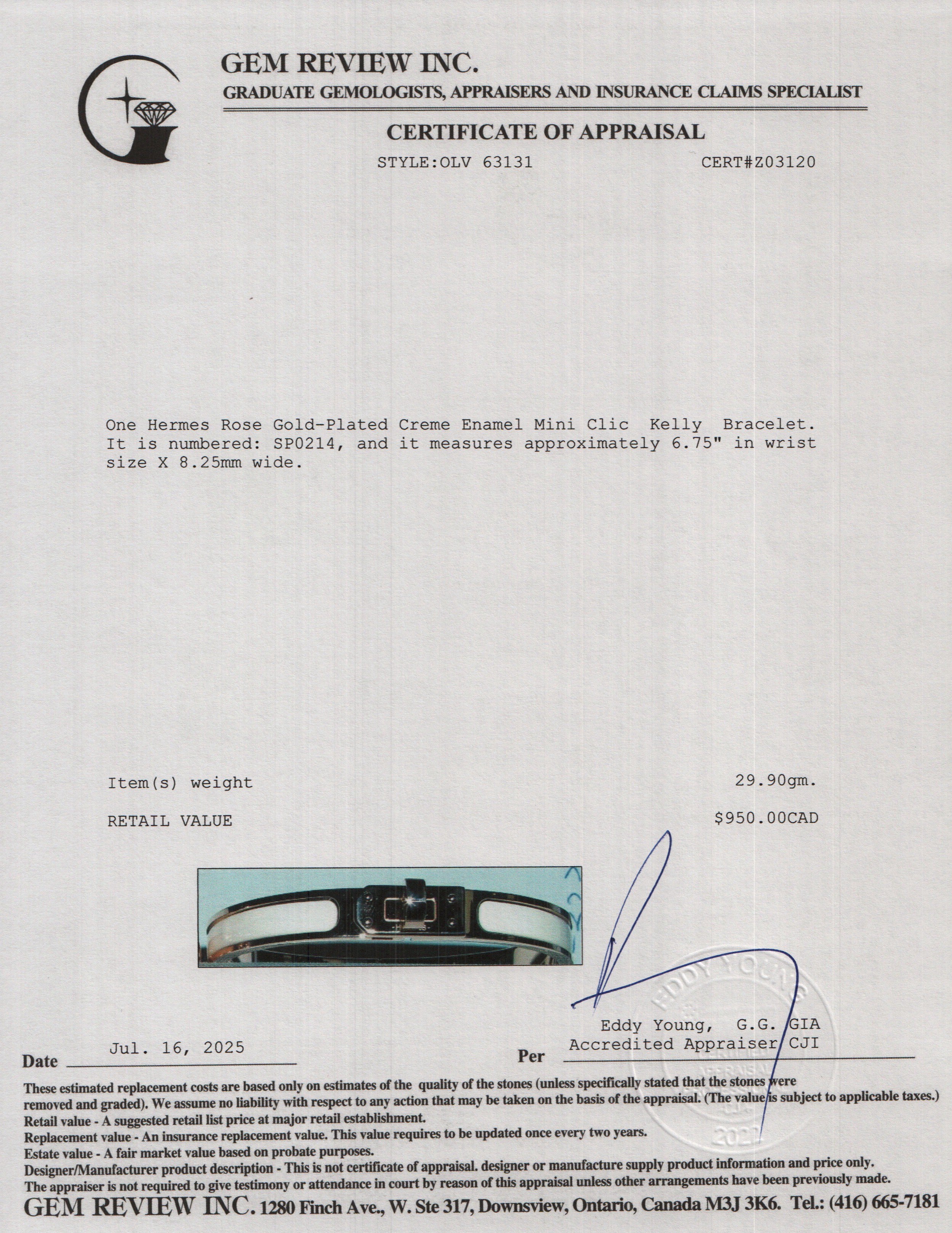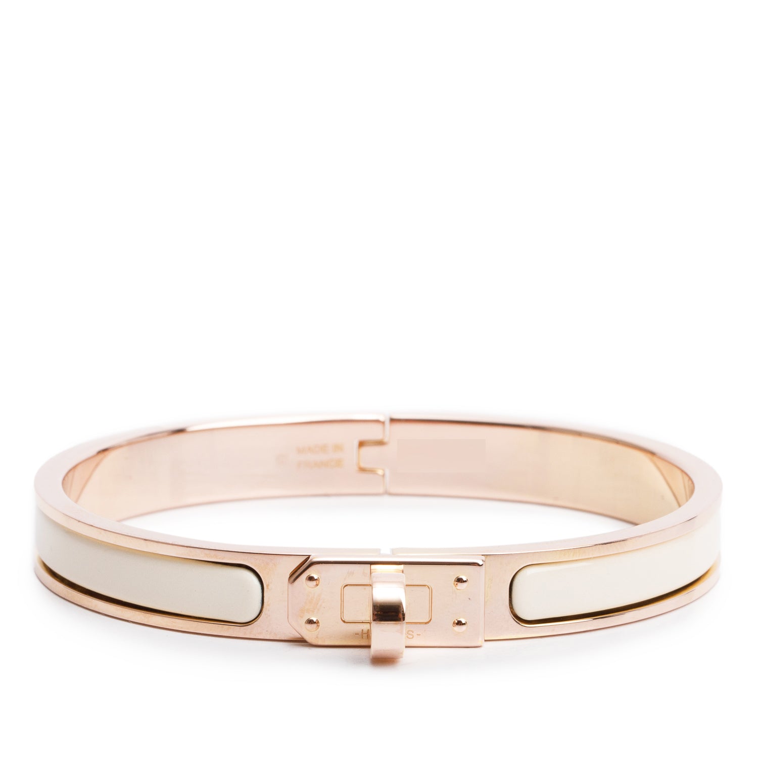 Rose Gold-Plated Creme Enamel Mini Clic Kelly Bracelet w/ Box