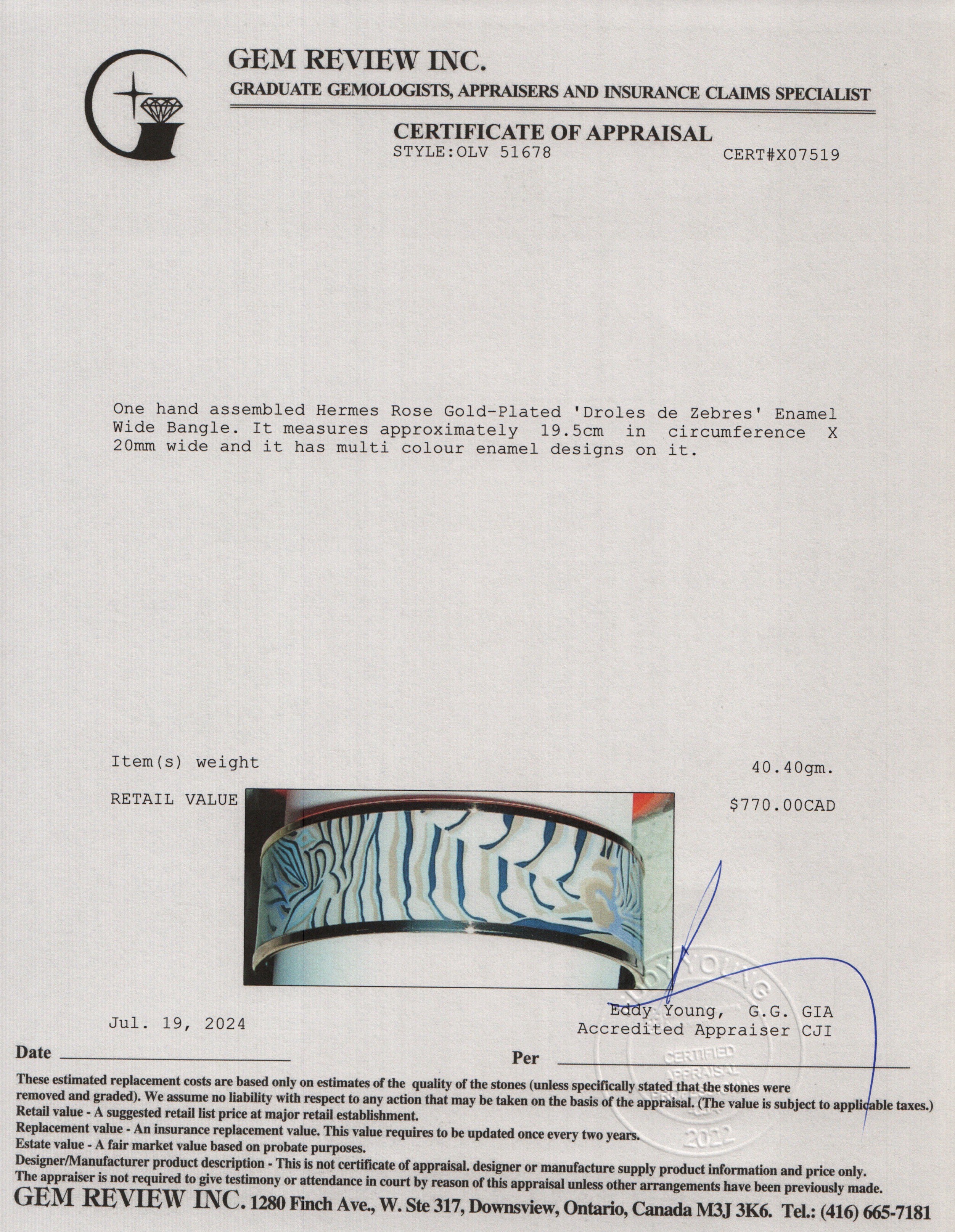 Rose Gold-Plated 'Droles de Zebres' Enamel Wide Bangle
