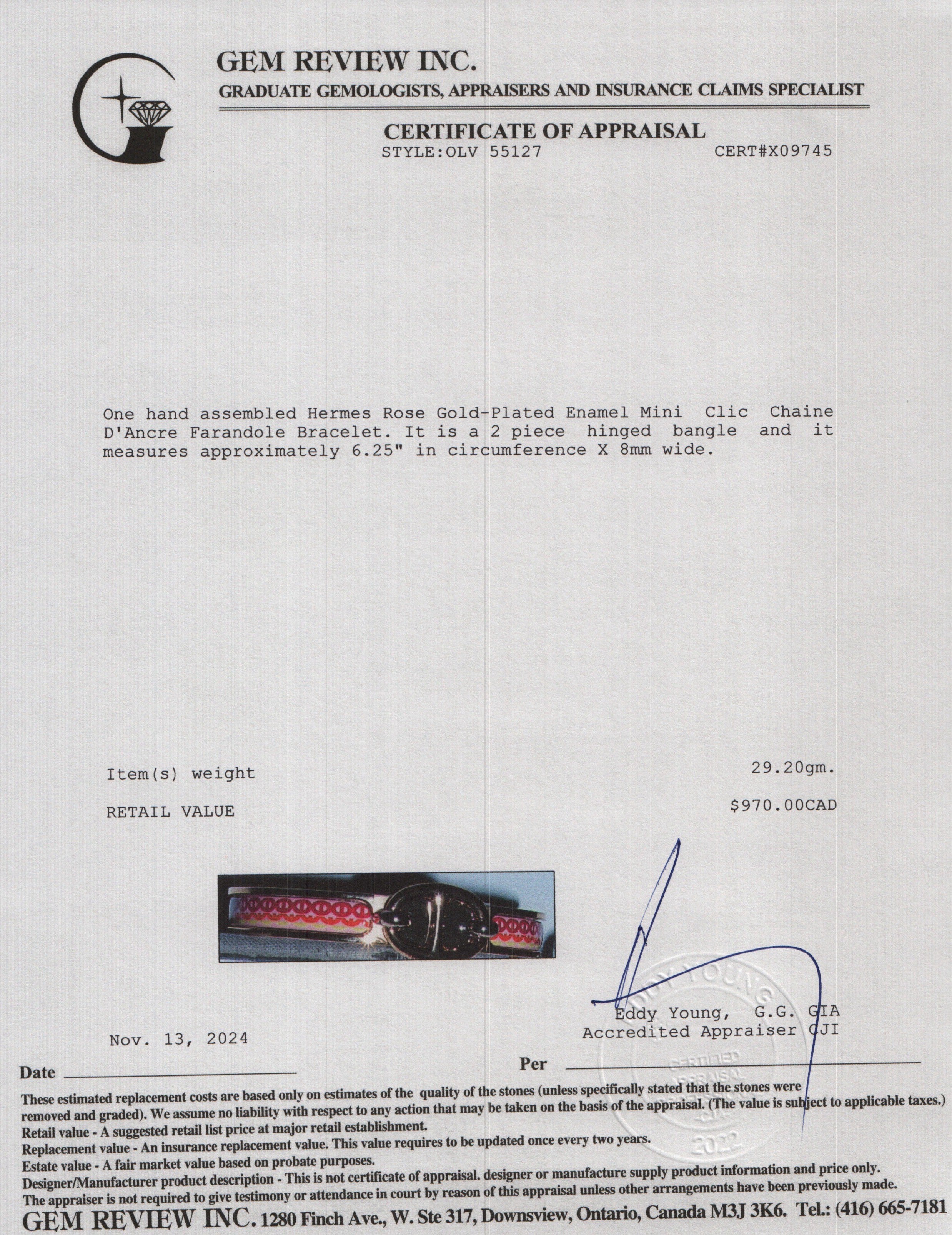 Rose Gold-Plated Enamel Mini Clic Chaine D'Ancre Farandole Bracelet w/ Box