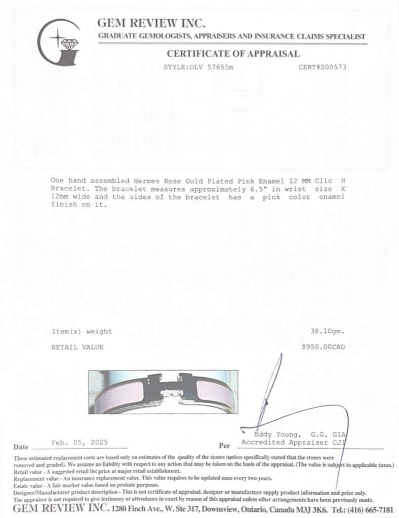 Rose Gold Plated Pink Enamel 12 MM Clic H Bracelet w/ Box