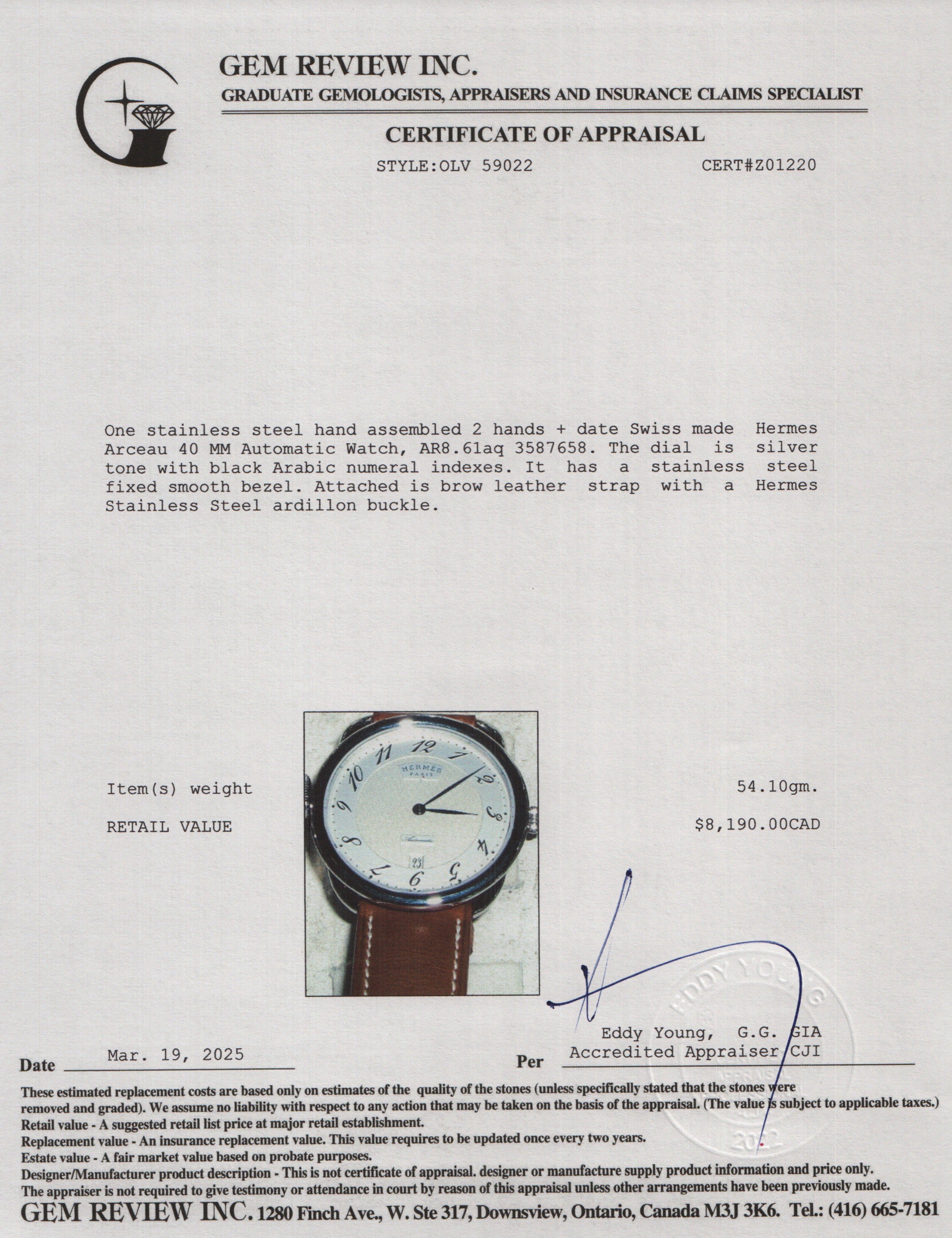 Stainless Steel Arceau 40 MM Automatic Watch w/ Box & Papers