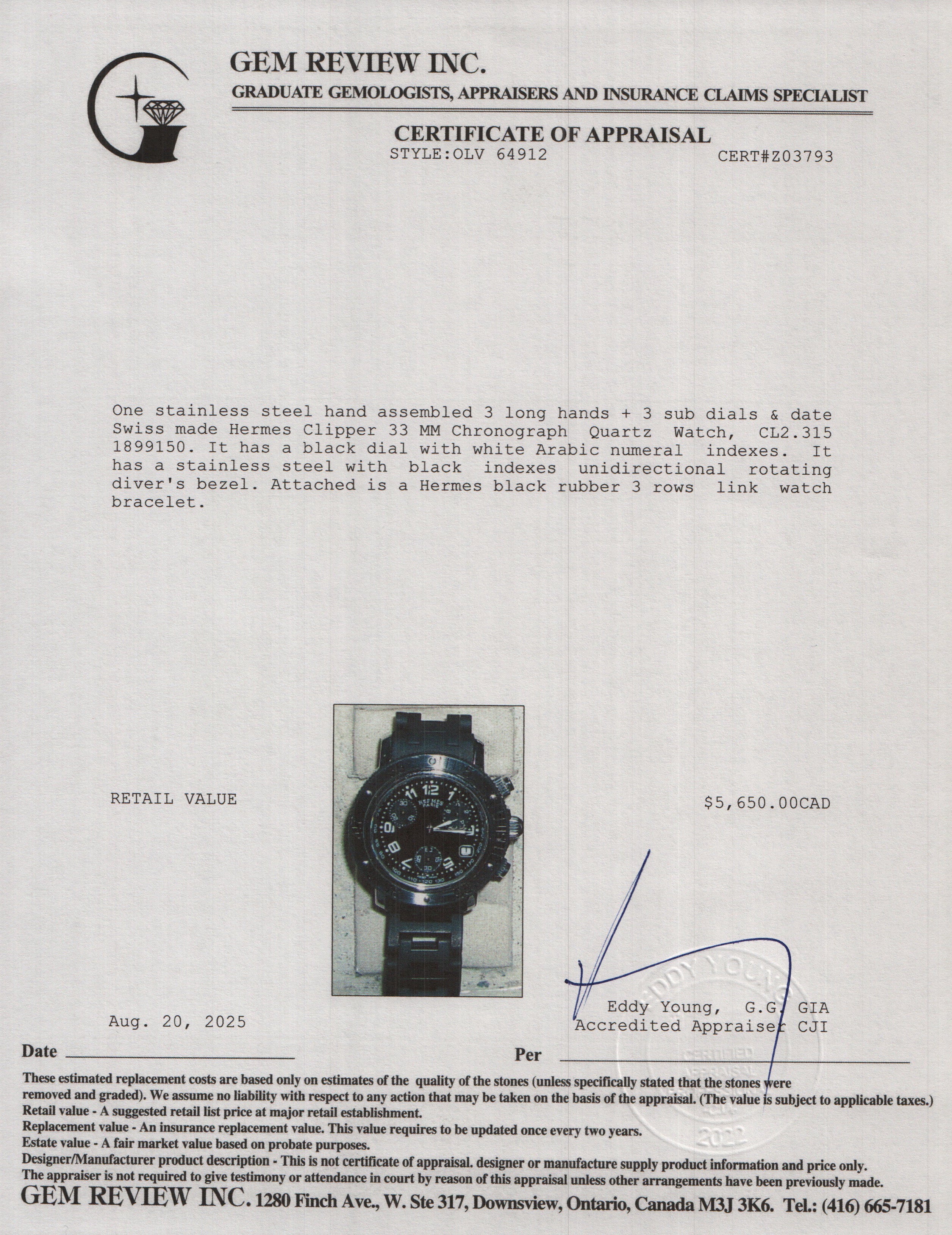 Stainless Steel Clipper 33 MM Chronograph Quartz Watch Black Dial
