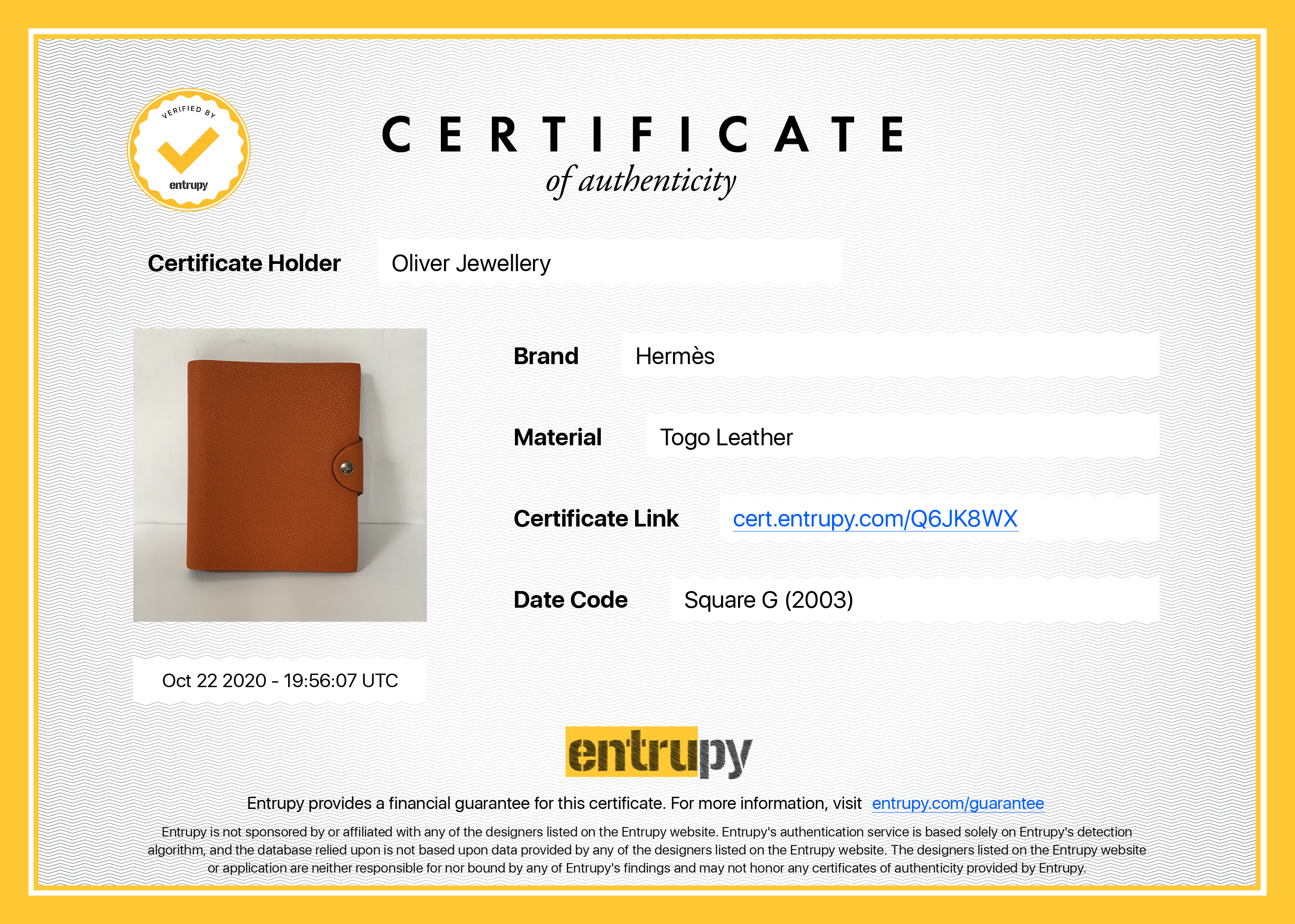 Included Items: Original Hermes Notebook, Box & Entrupy Certificate of Authenticity #Q6JK8WX