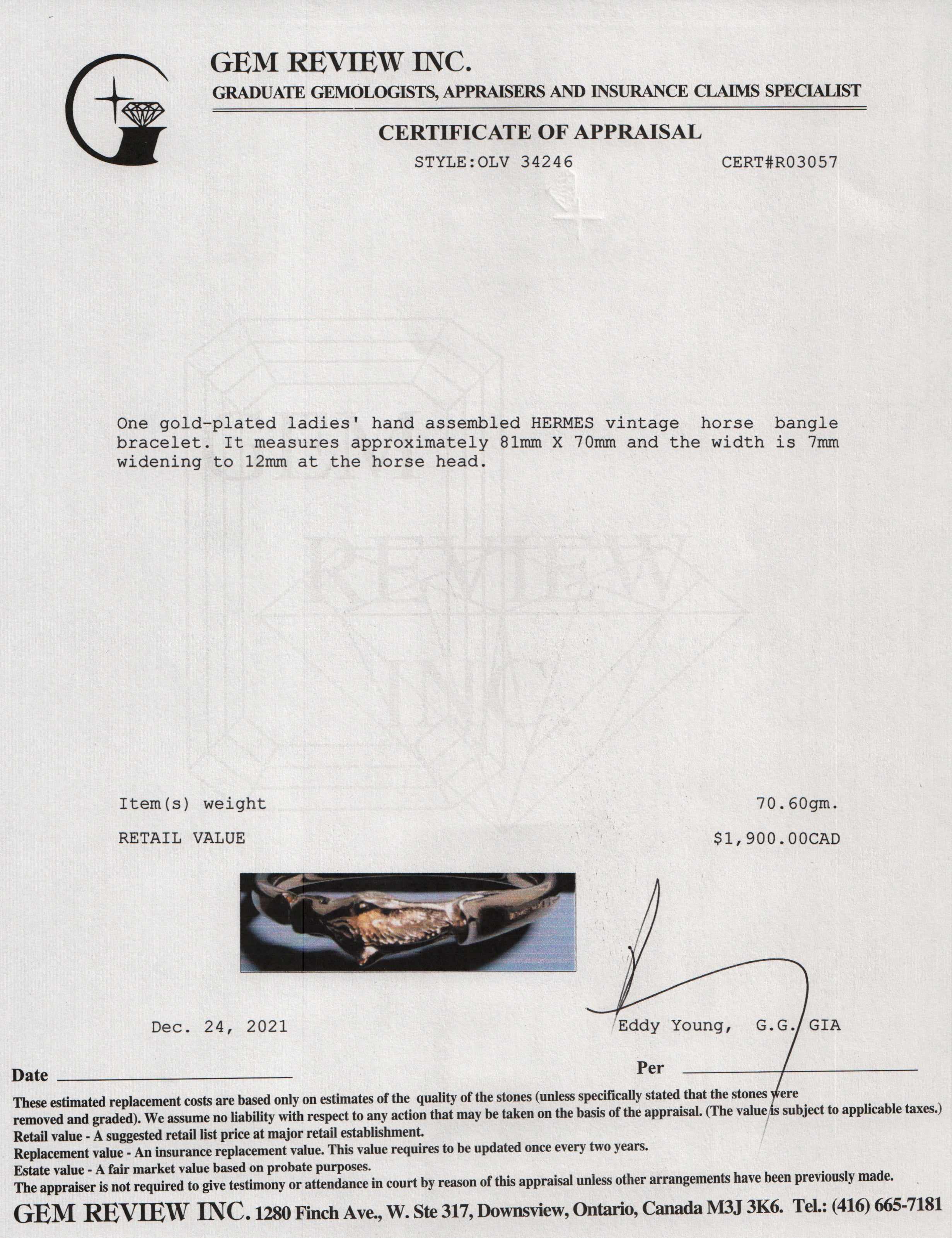 Hermes Vintage Gold Plated Horse Bangle Bracelet