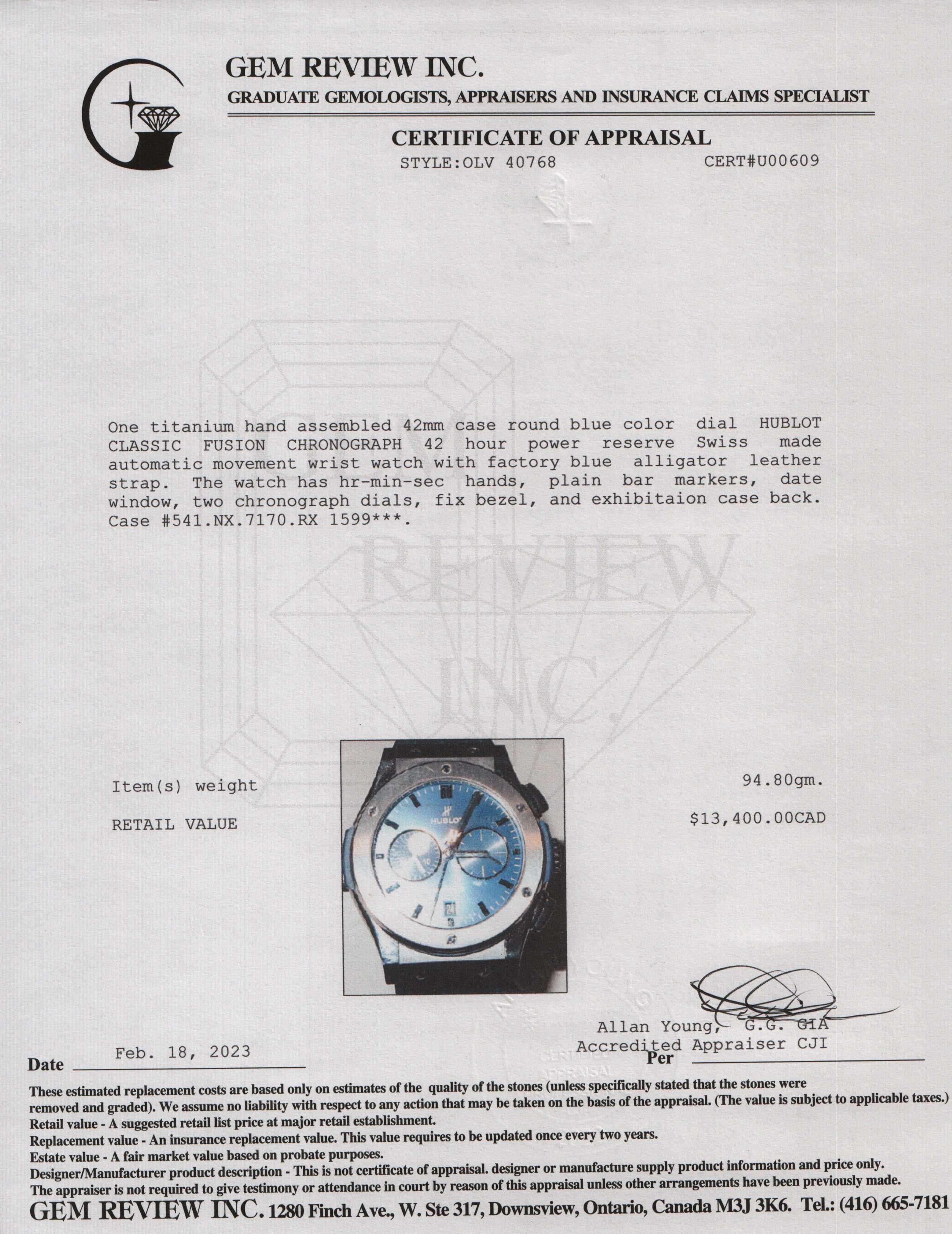 Hublot Titanium Classic Fusion Chronograph 42 MM Watch
