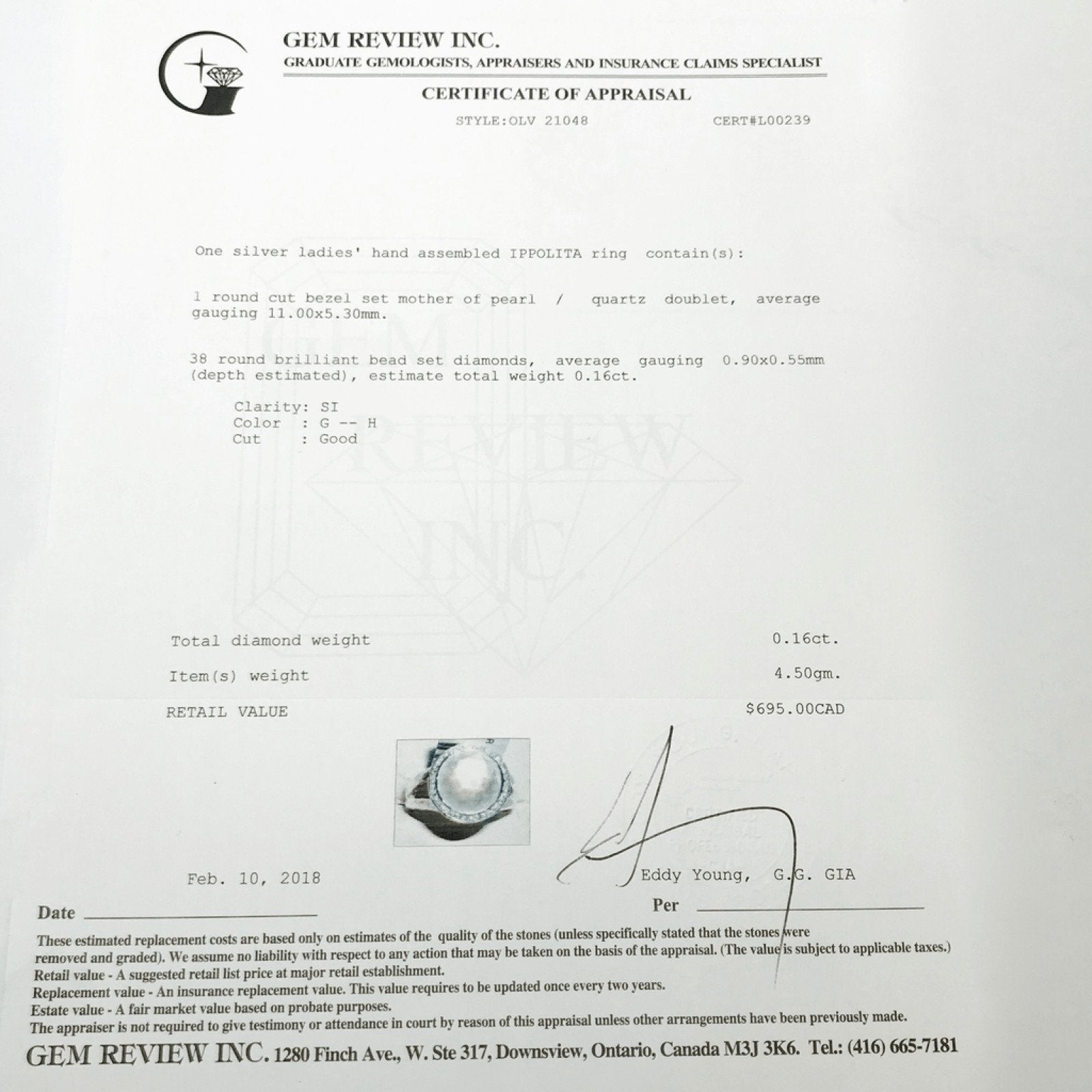 Ippolita Lollipop Collection Ring in Sterling Silver with Diamonds (0.15 TCW) and Mother-of-Pearl Center Stone, Size 6, Comes with Gem Review Appraisal