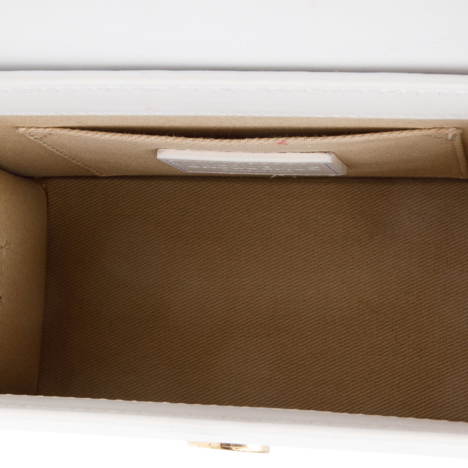Condition: Very Good; light creasing and marks at exterior leather; minor scuffing at exterior bottom corners; clean interior