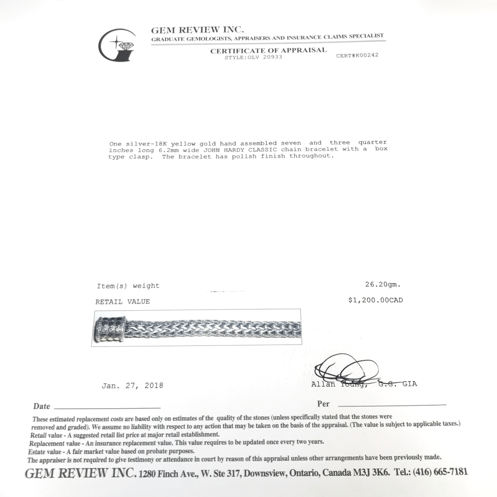 John Hardy Bracelet in Sterling Silver and Yellow Gold comes with Gem Review Appraisal