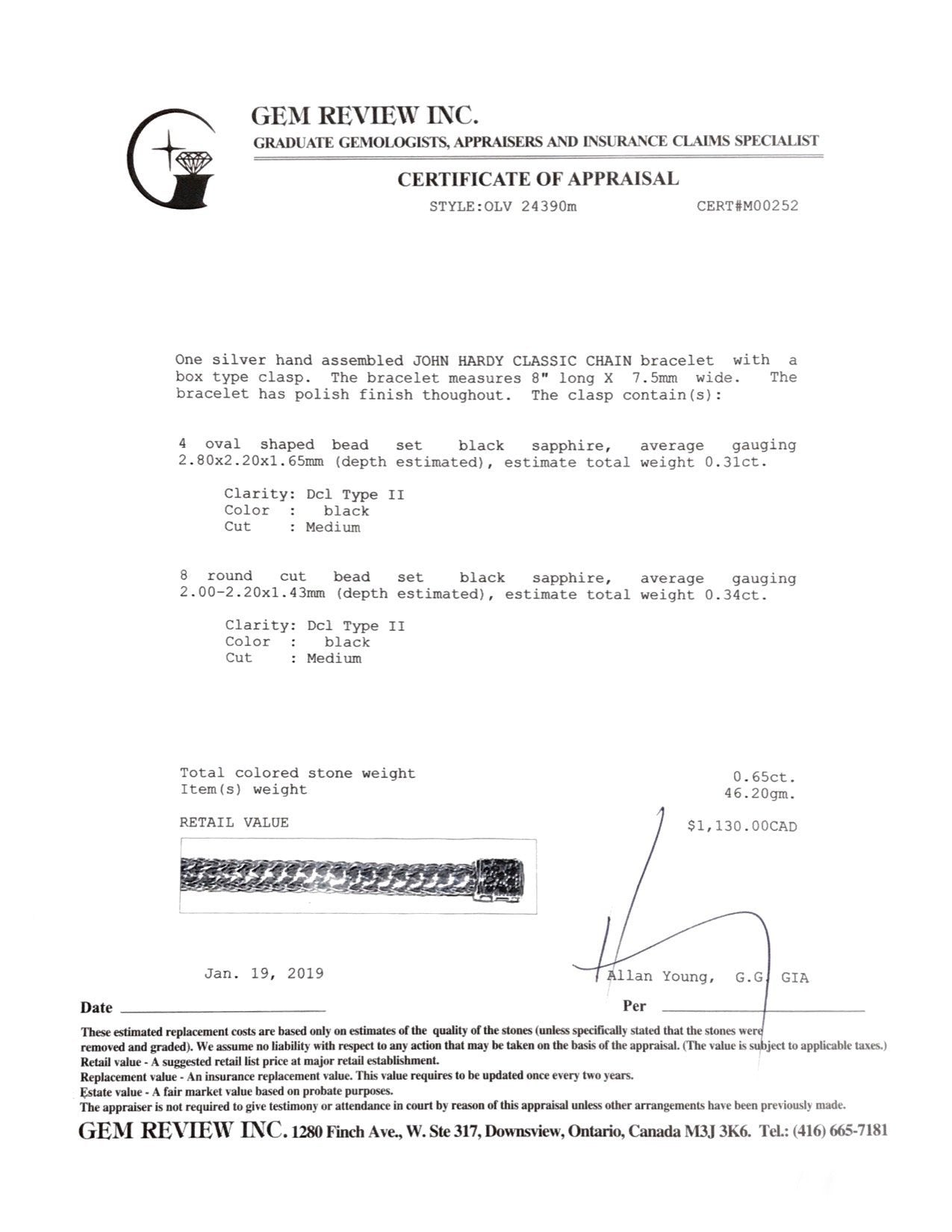 John Hardy Classic Chain Bracelet with Black Sapphires
