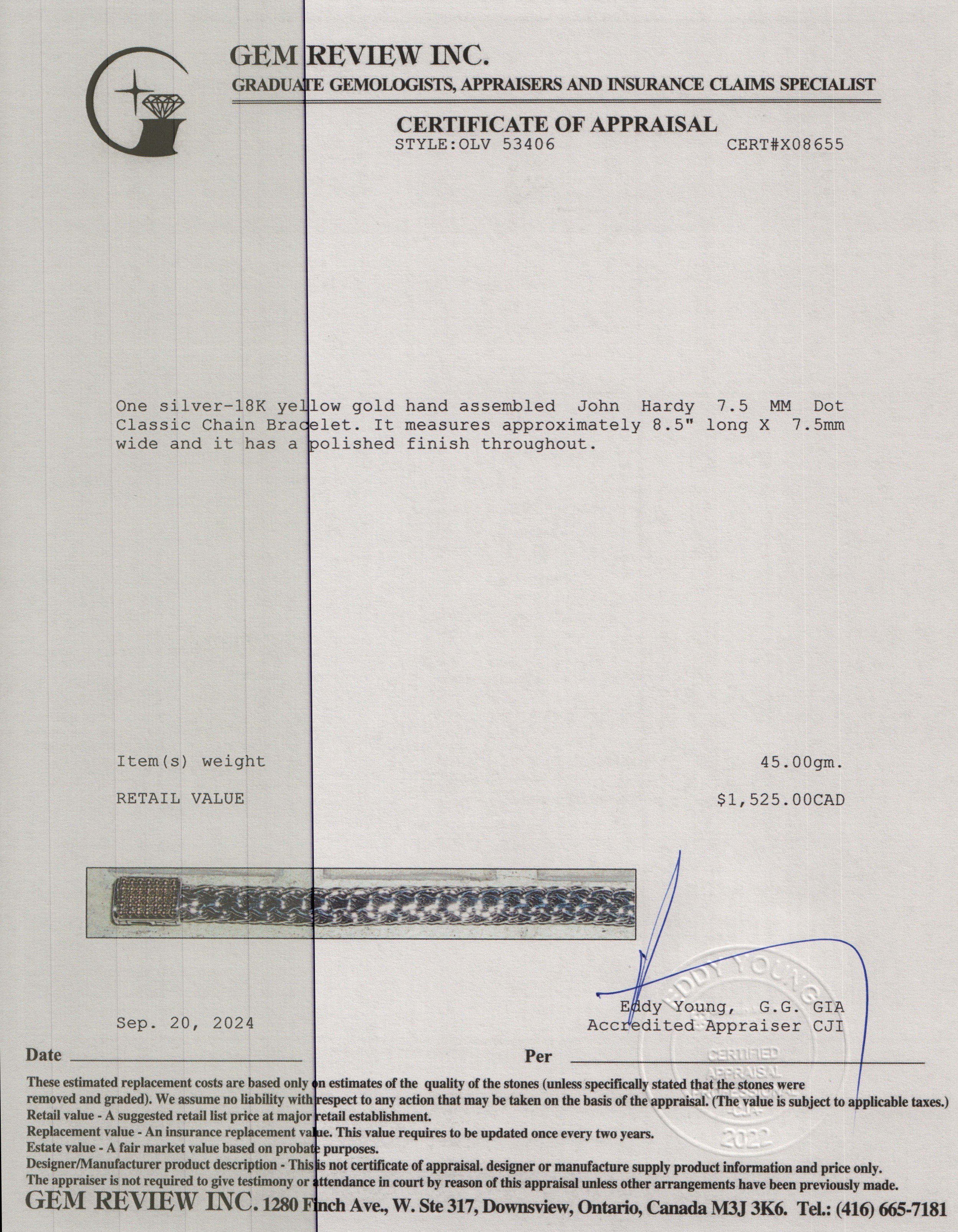 Sterling Silver & 18k Yellow Gold 7.5 MM Dot Classic Chain Bracelet