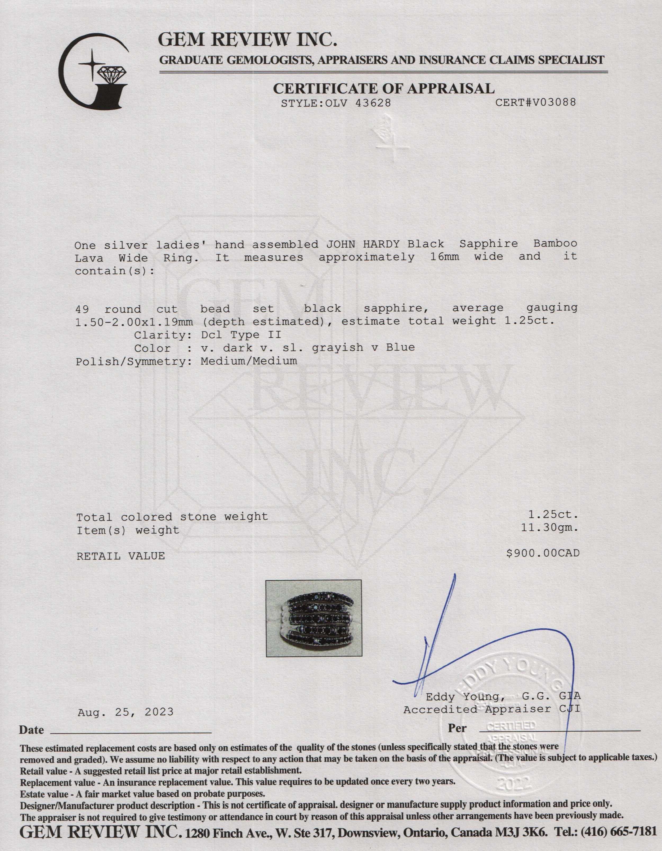 Sterling Silver Black Sapphire Bamboo Lava Wide Ring