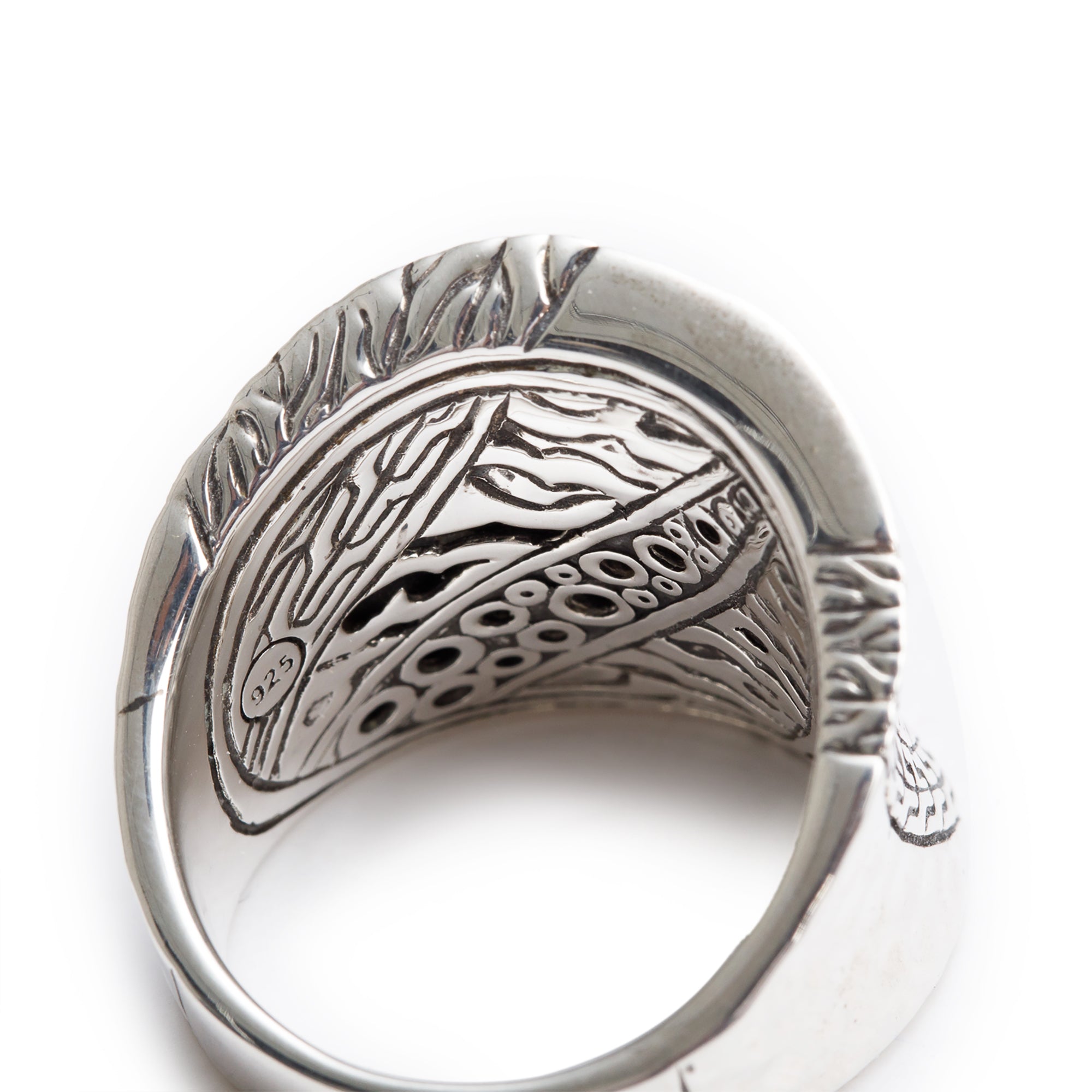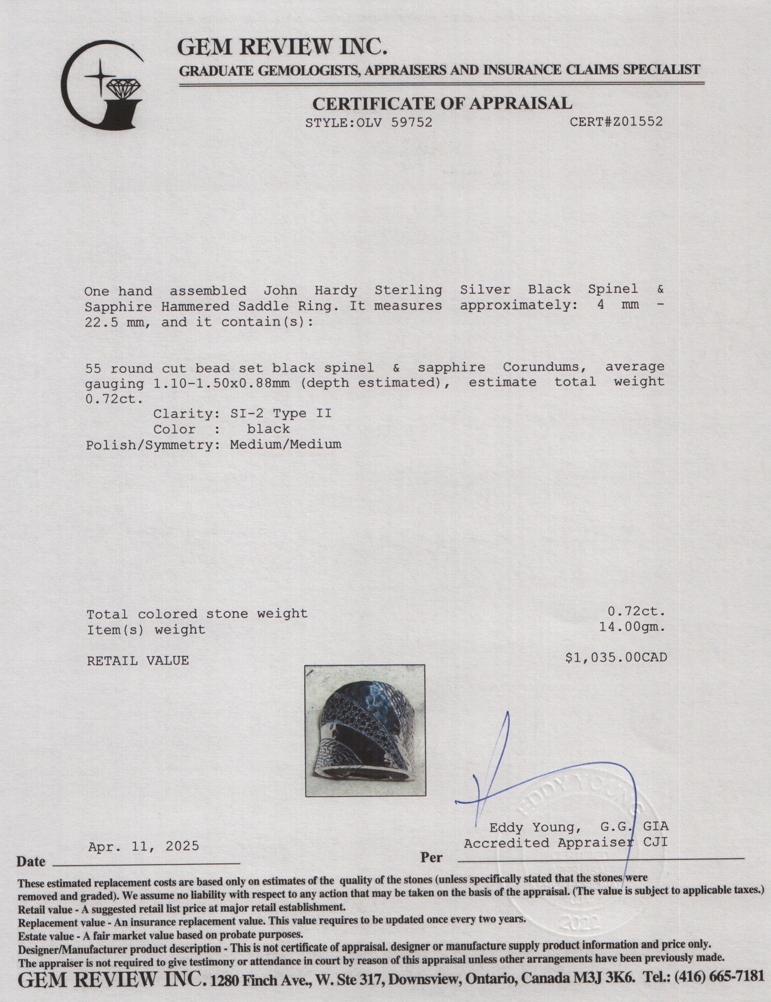 Sterling Silver Black Spinel & Sapphire Hammered Saddle Ring, Size 8