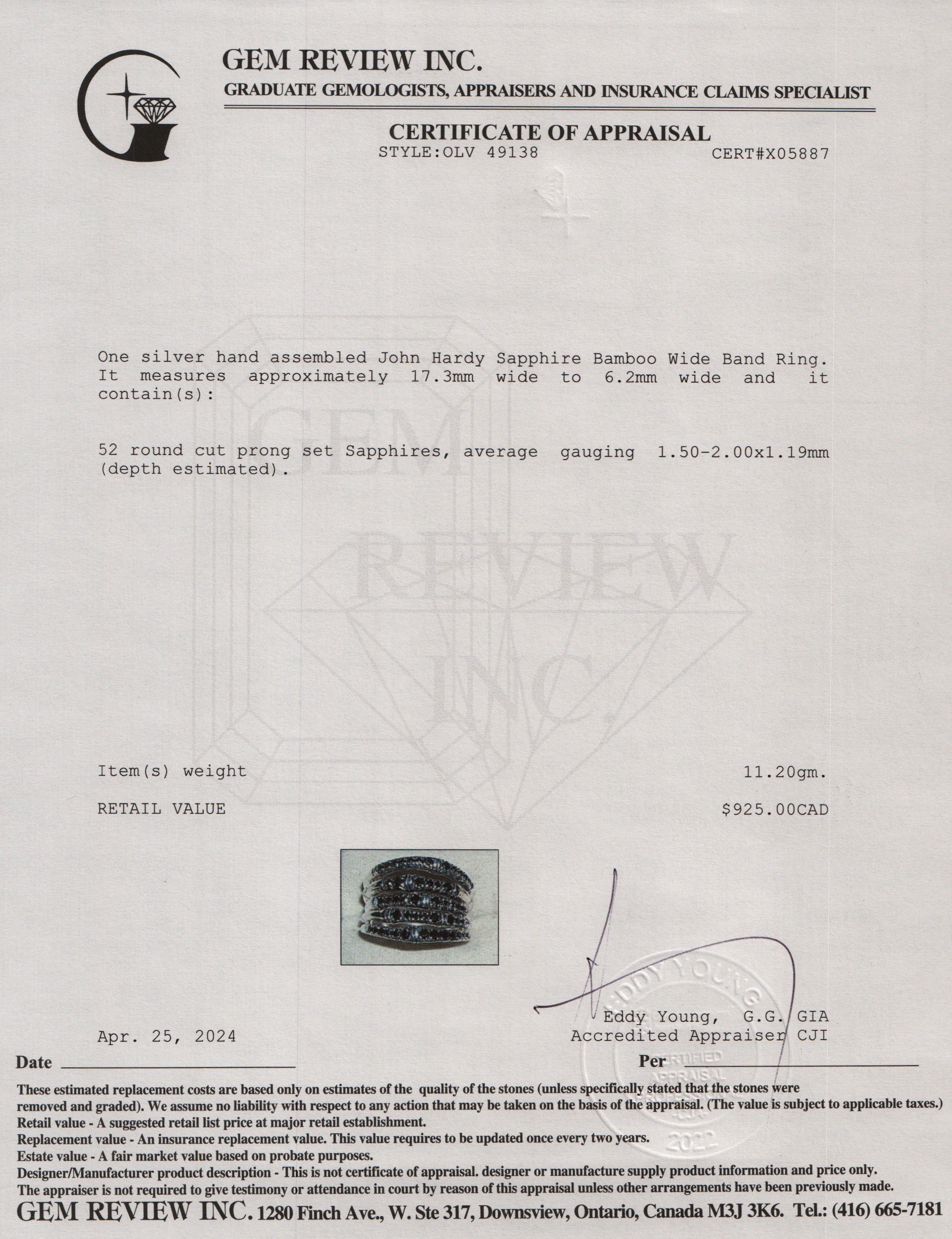 Sterling Silver Sapphire Bamboo Wide Band Ring, Size 7