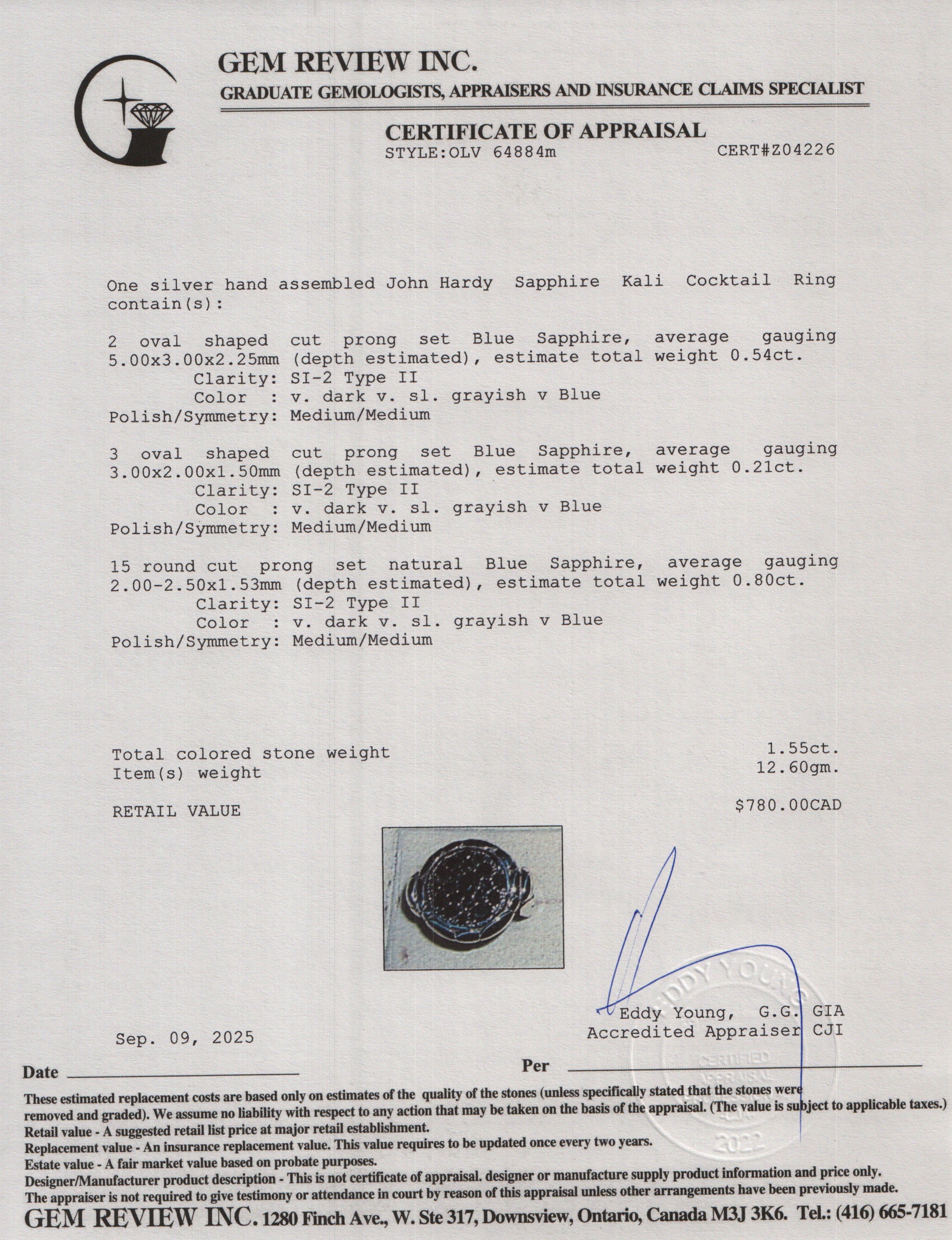 Sterling Silver Sapphire Kali Cocktail Ring, Size 7
