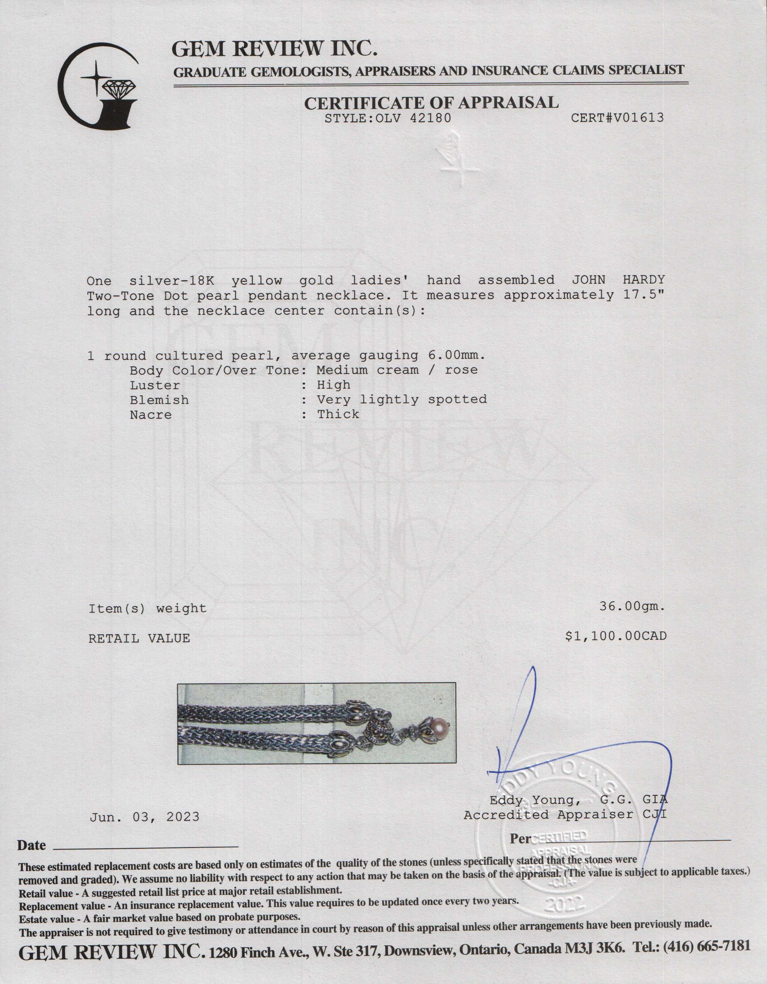 John Hardy Two-Tone Dot Pearl Pendant Necklace