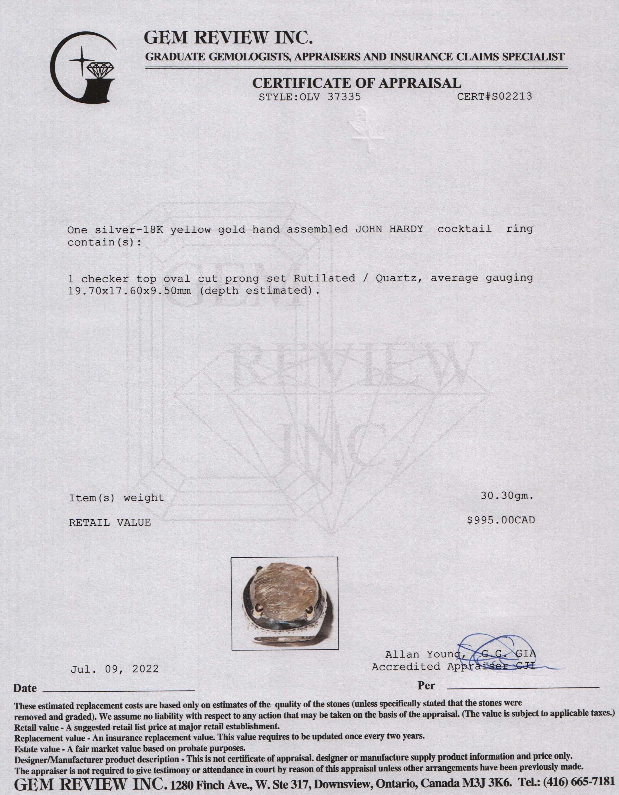 John Hardy Two-Tone Rutilated Quartz Cocktail Ring