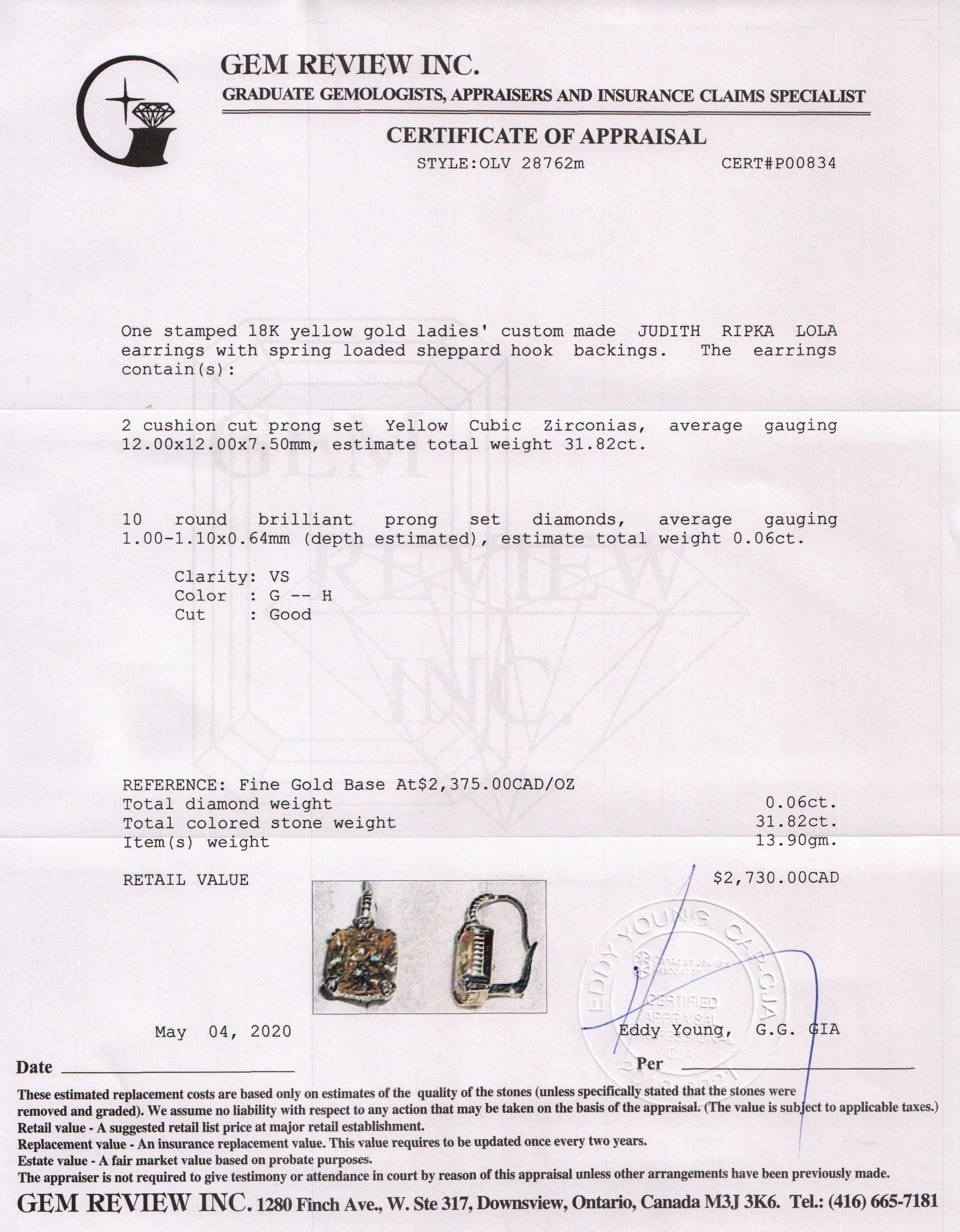 Judith Ripka 18k Gold Canary Crystal & Diamond Lola Earrings