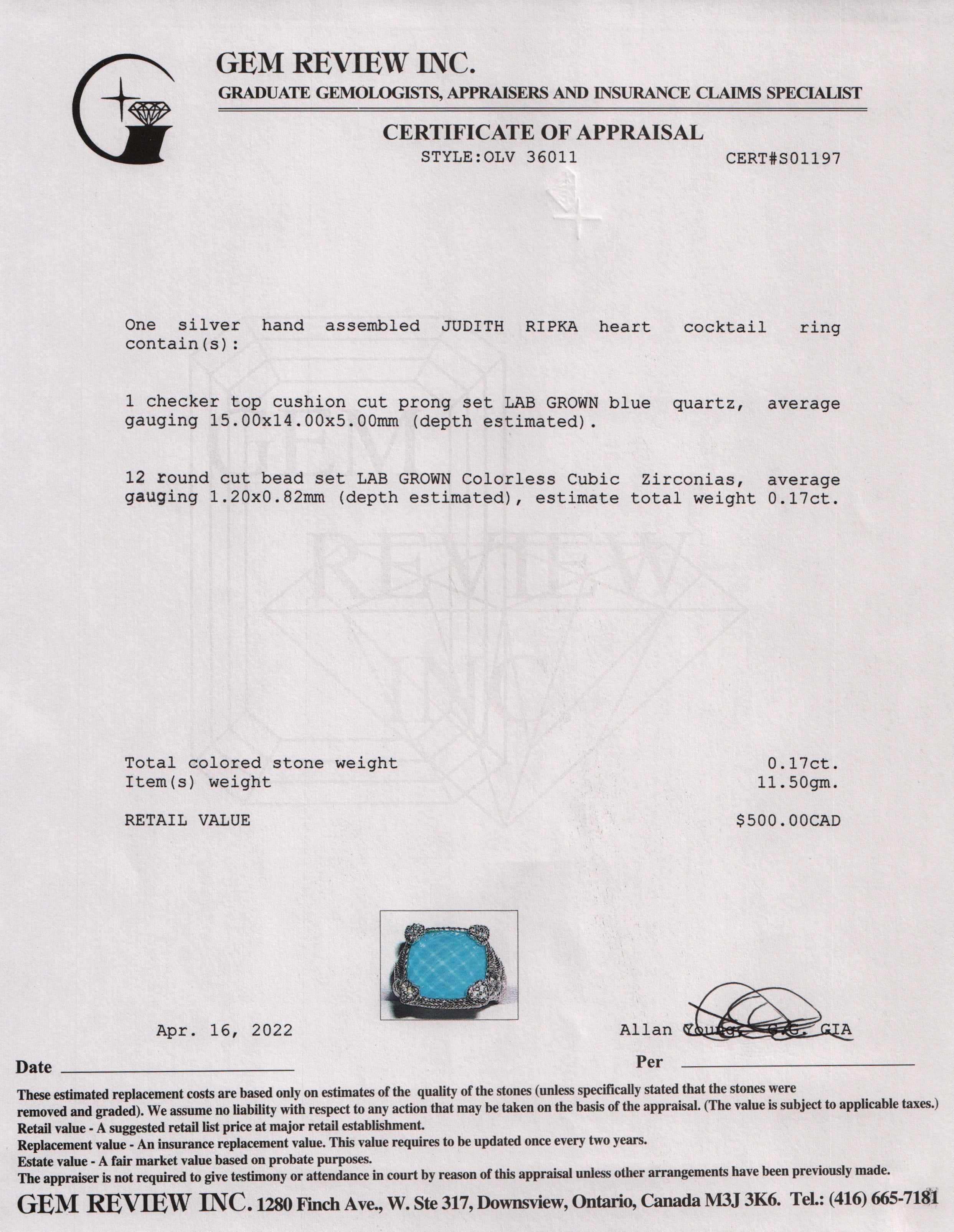 Included Items: Gem Review Appraisal