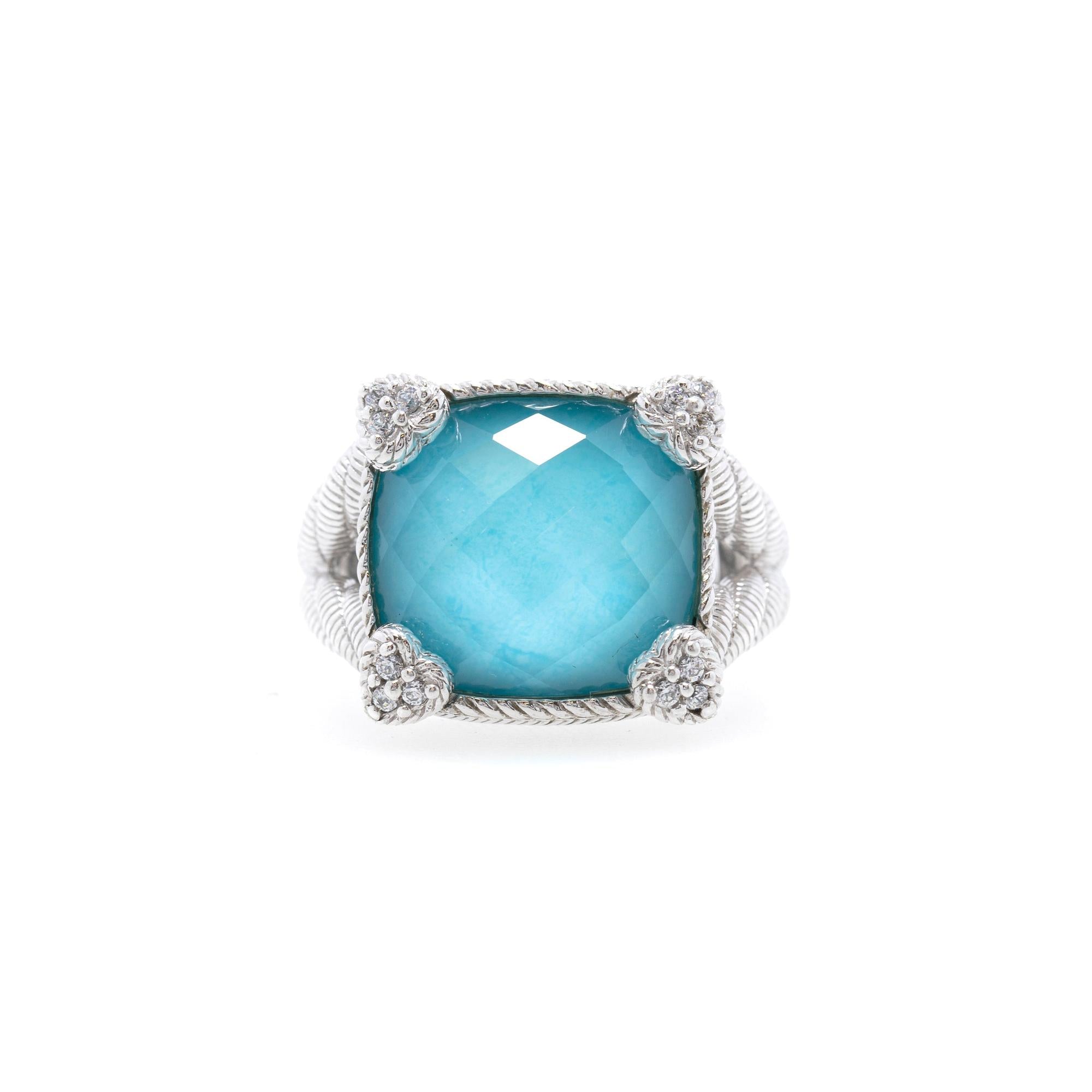 Judith Ripka Blue Quartz Doublet & CZ Heart Cocktail Ring
