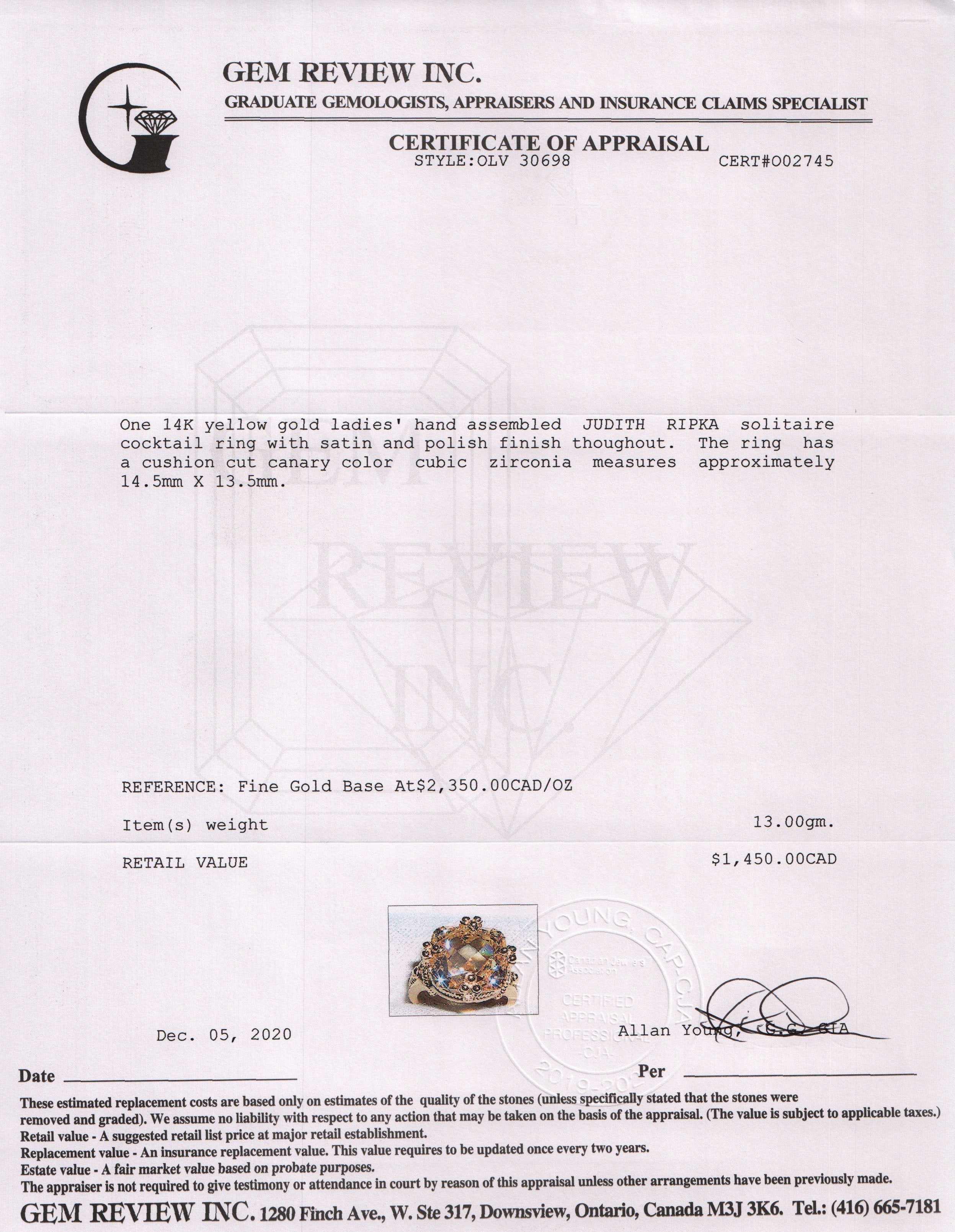 - 1 Yellow Cubic Zirconia Weighing Approximately 13.5 mm x 14.5 mm