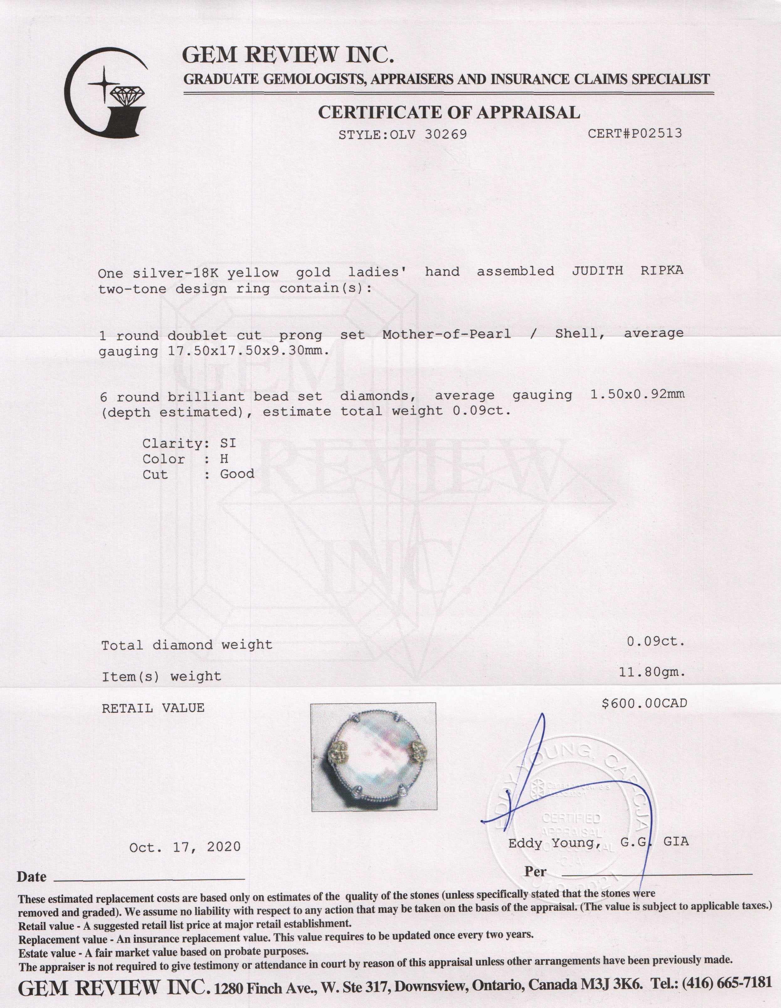Judith Ripka Two-Tone Mother of Pearl Doublet and Diamond Ring
