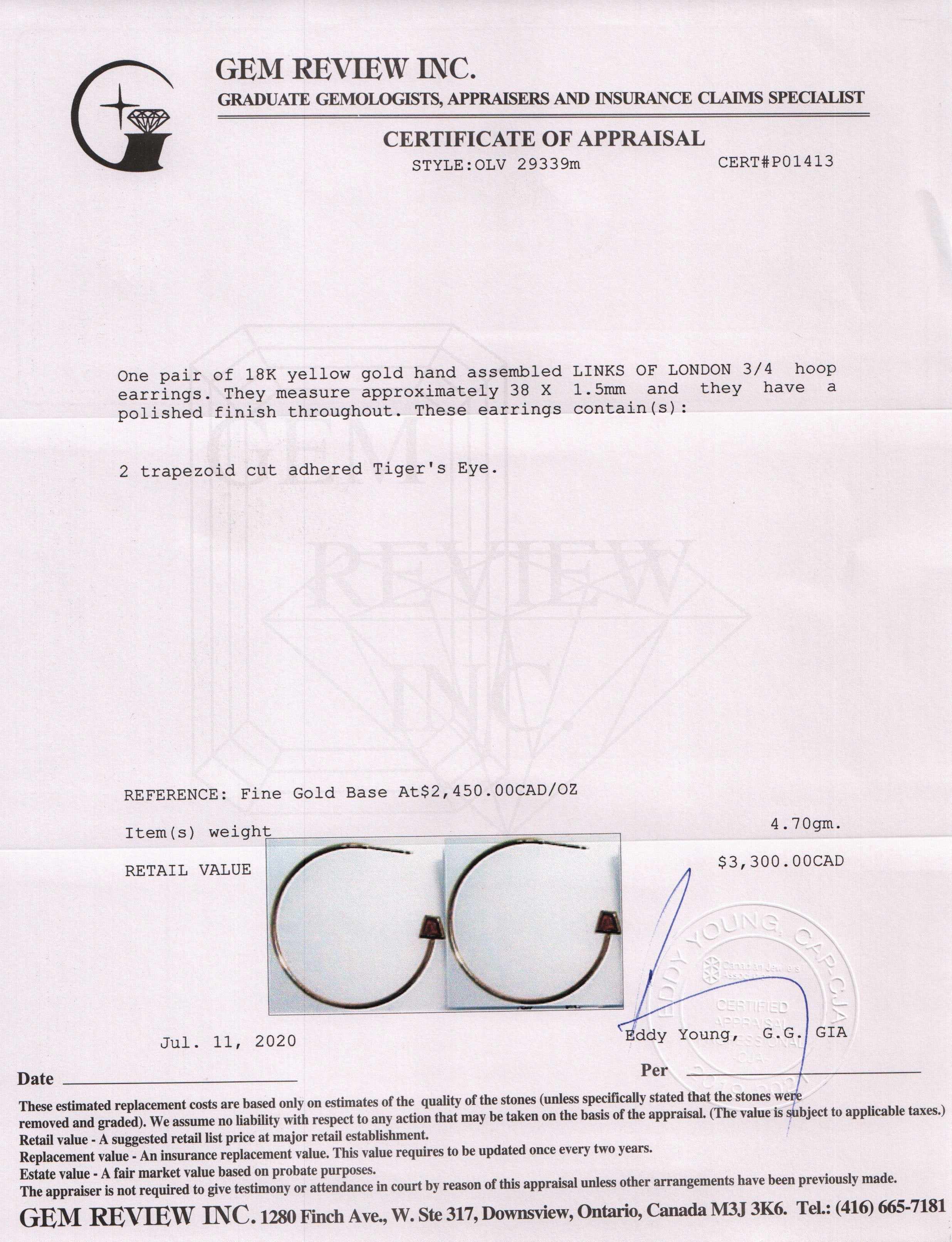 Links of London 18K Gold Tiger’s Eye Hoop Earrings