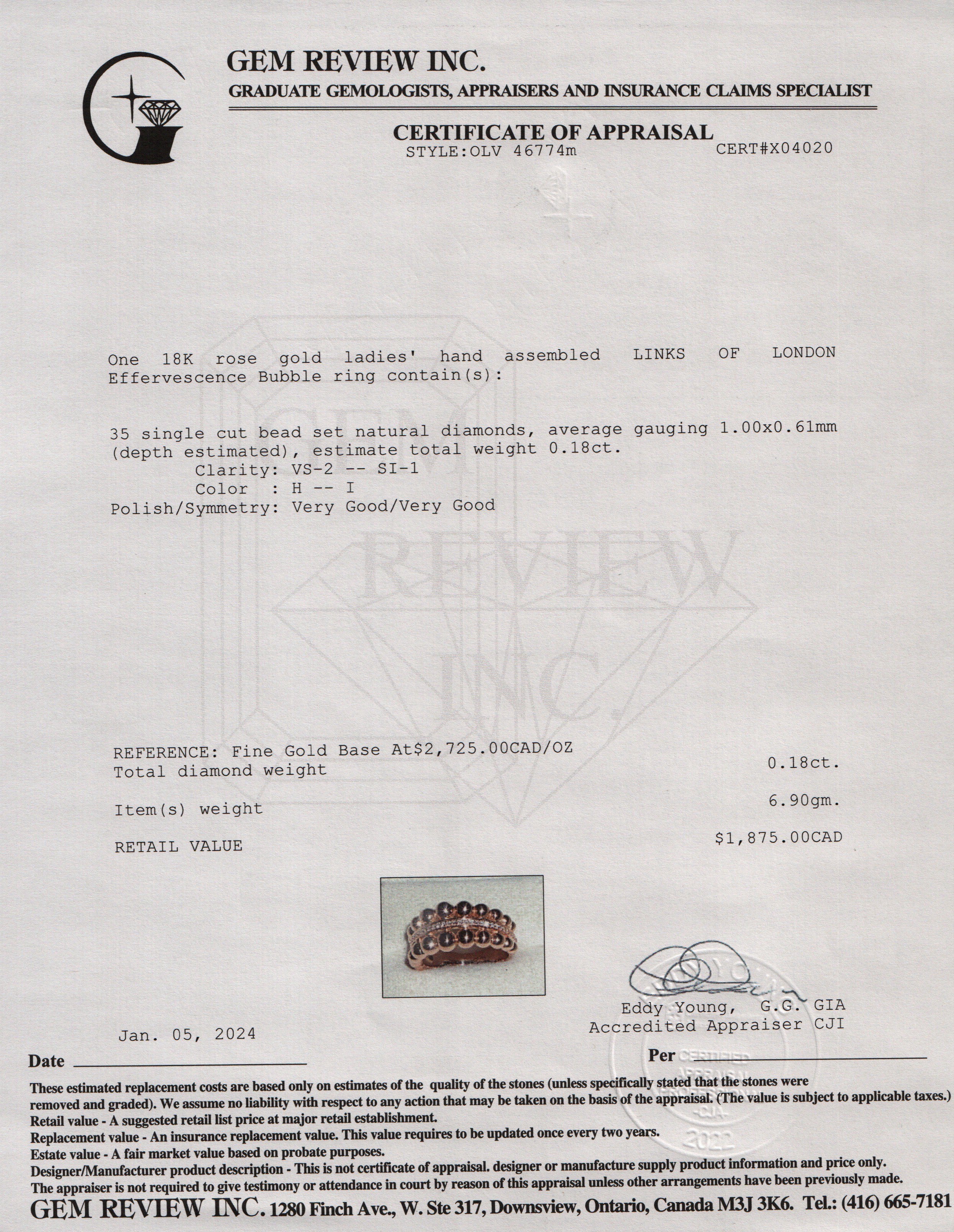 18k Rose Gold Effervescence Diamond Bubble Ring, Size 4.75