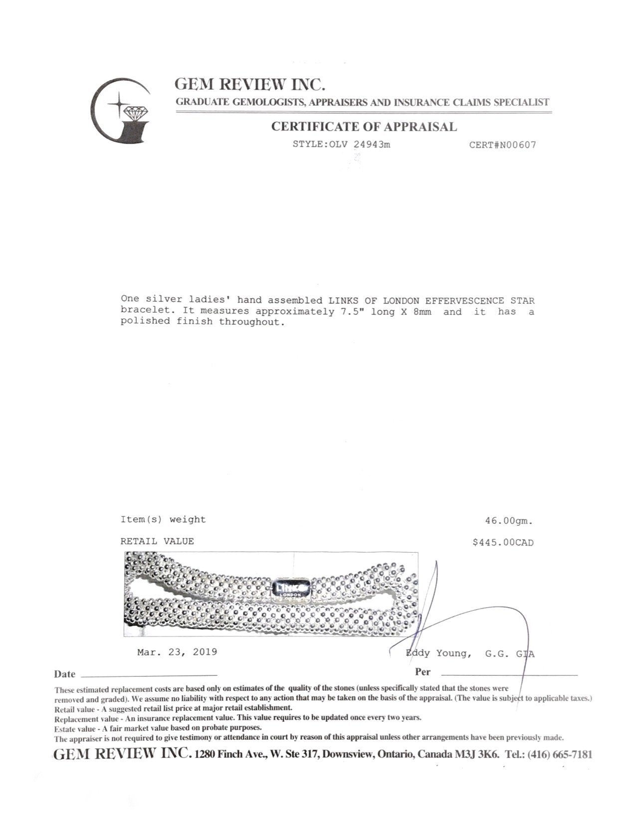 - Signature/Hallmarks: Links London LL 925