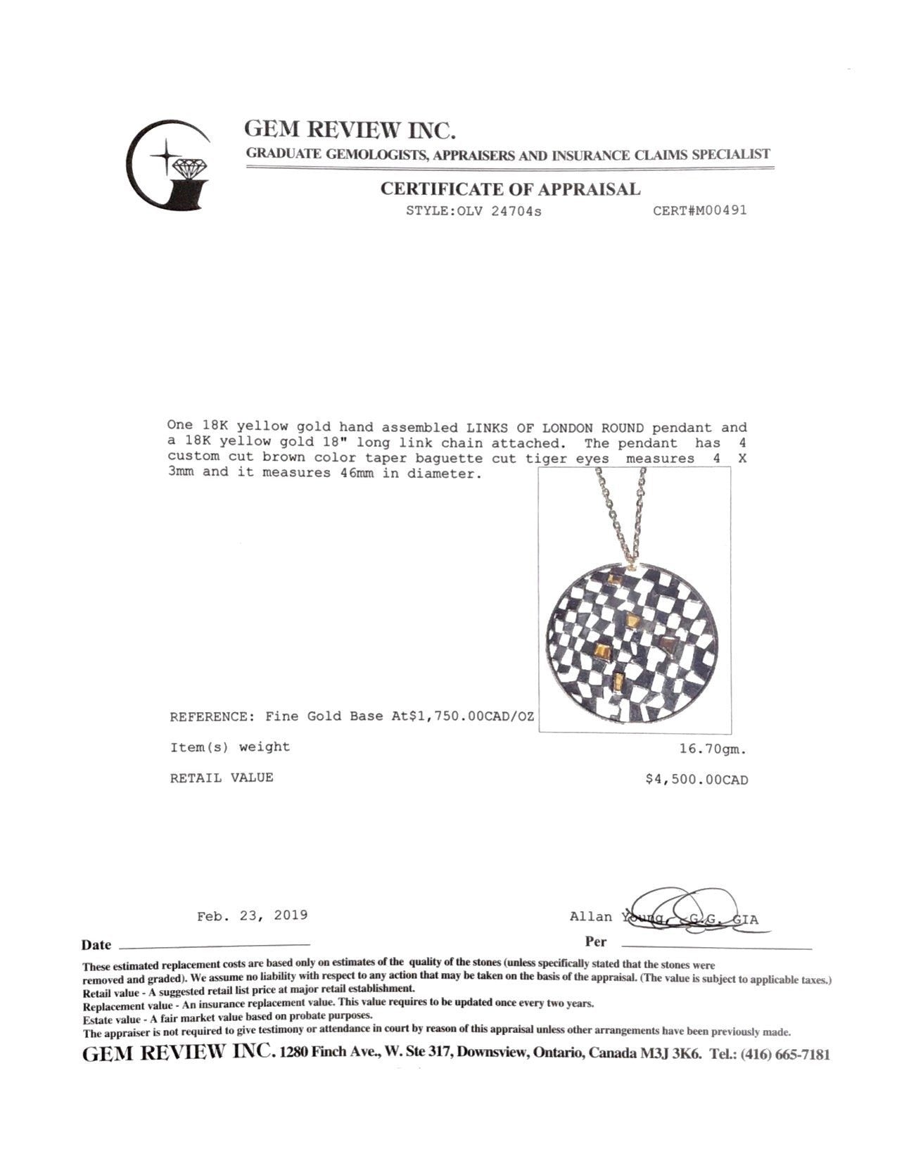 Links of London Large Round Pendant Necklace with Tiger's Eye