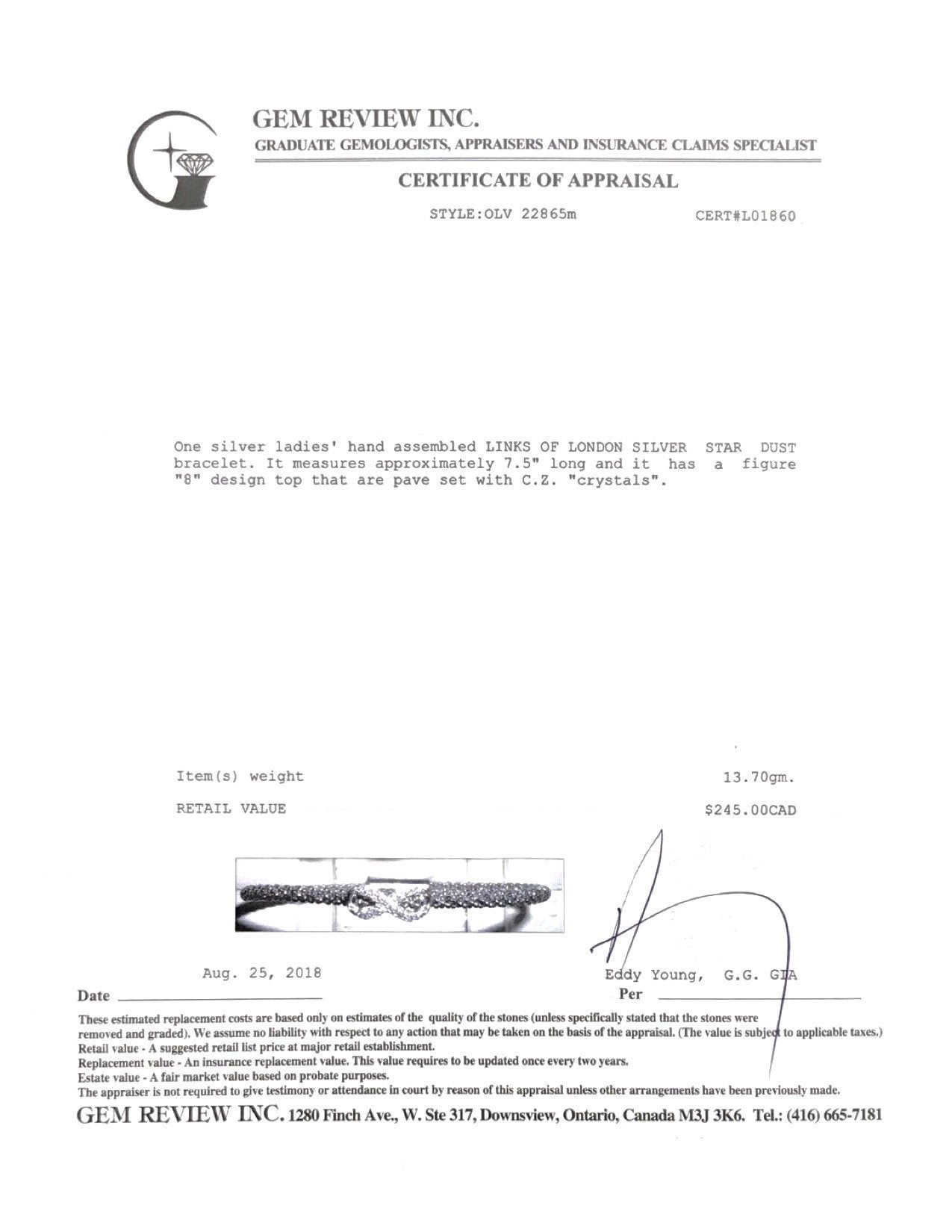 - Signature/Hallmarks: Links London LL 925