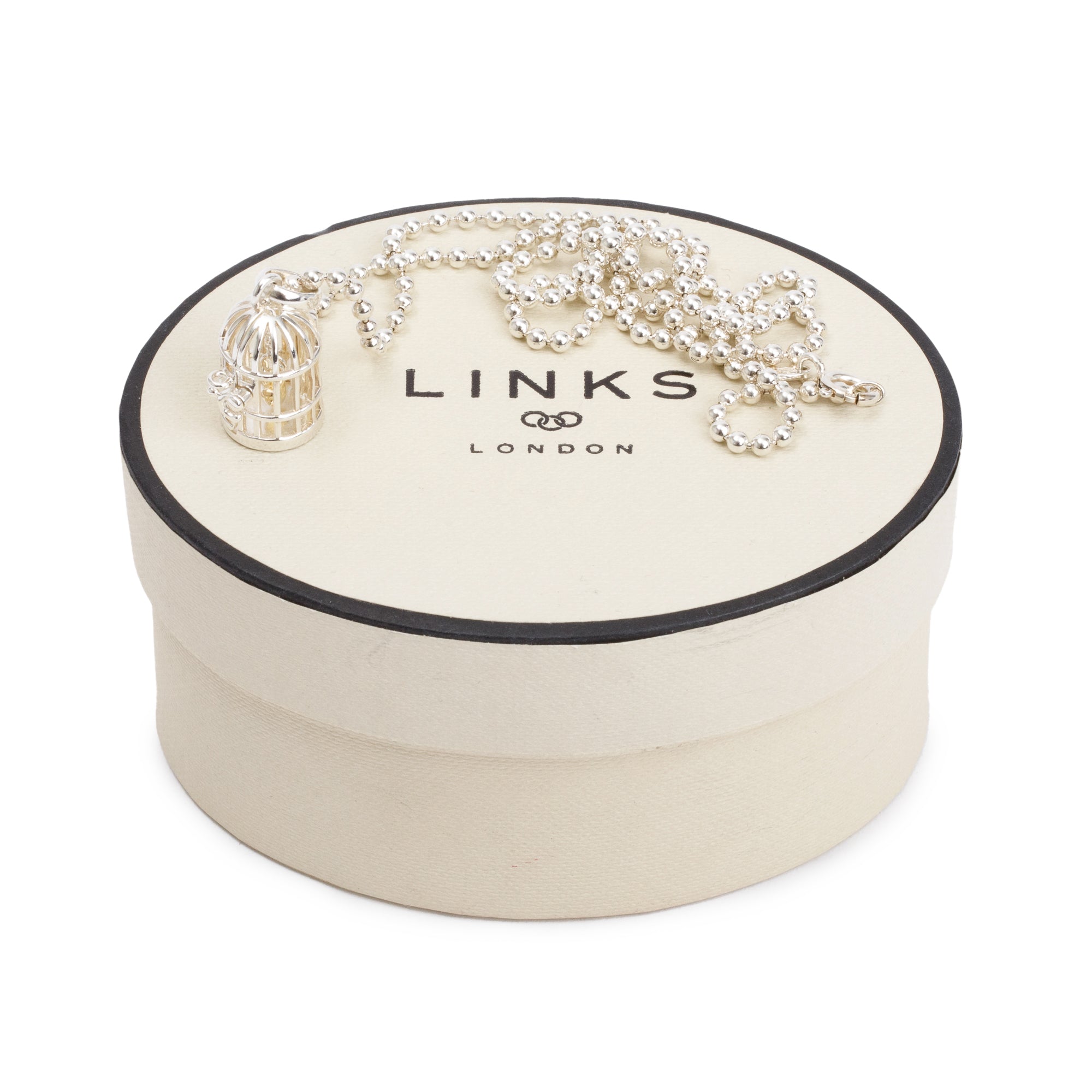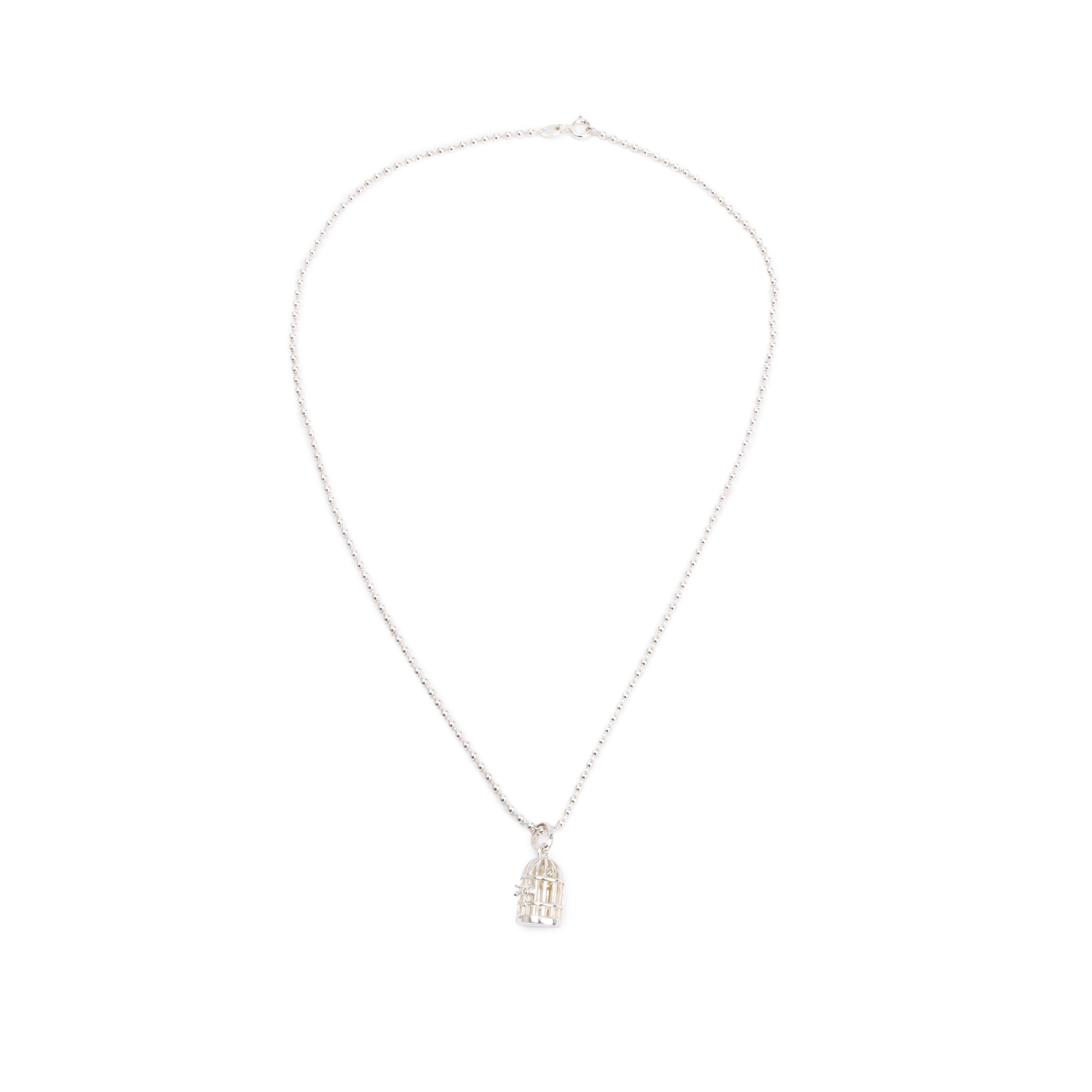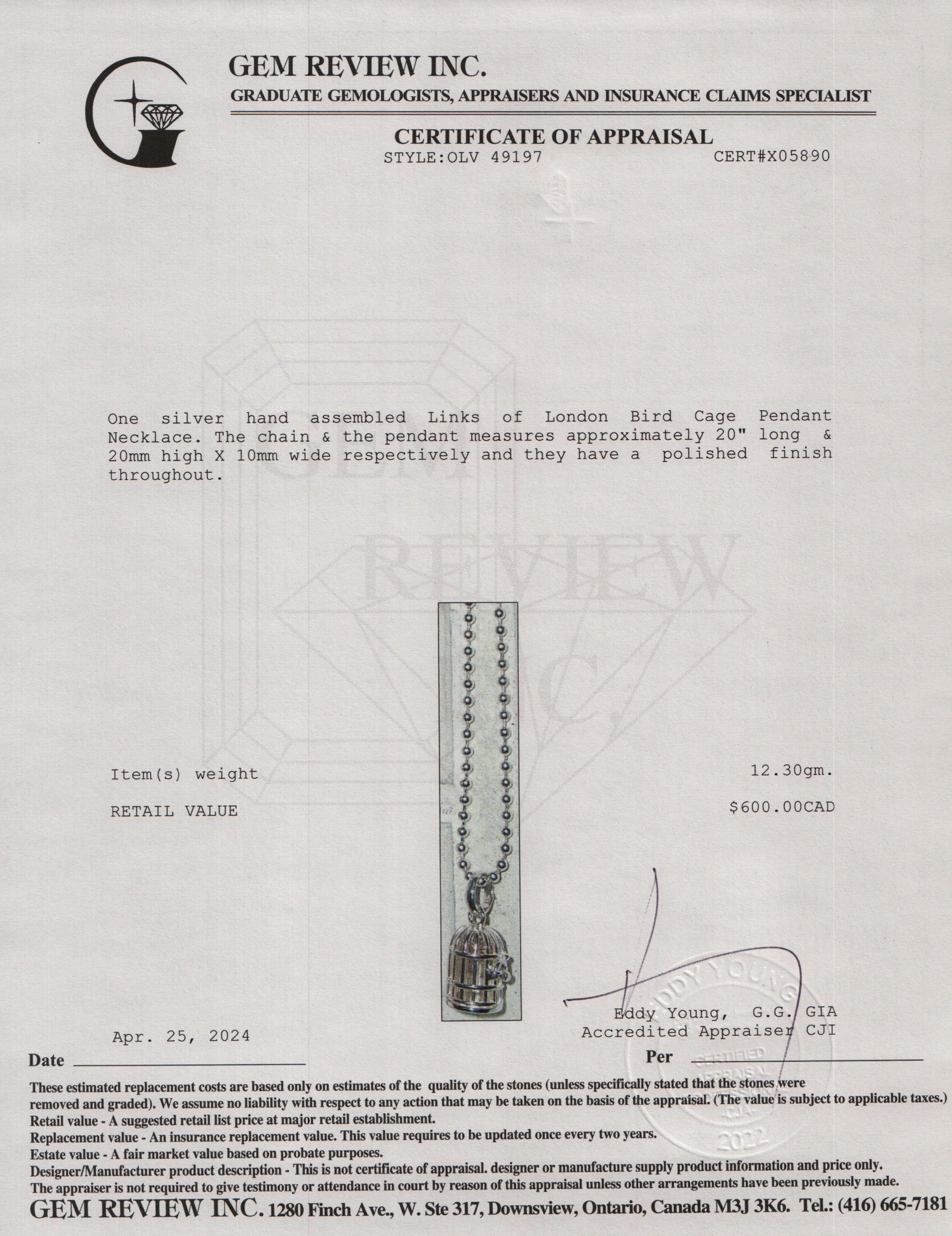 Sterling Silver Bird Cage Pendant Necklace w/ Box