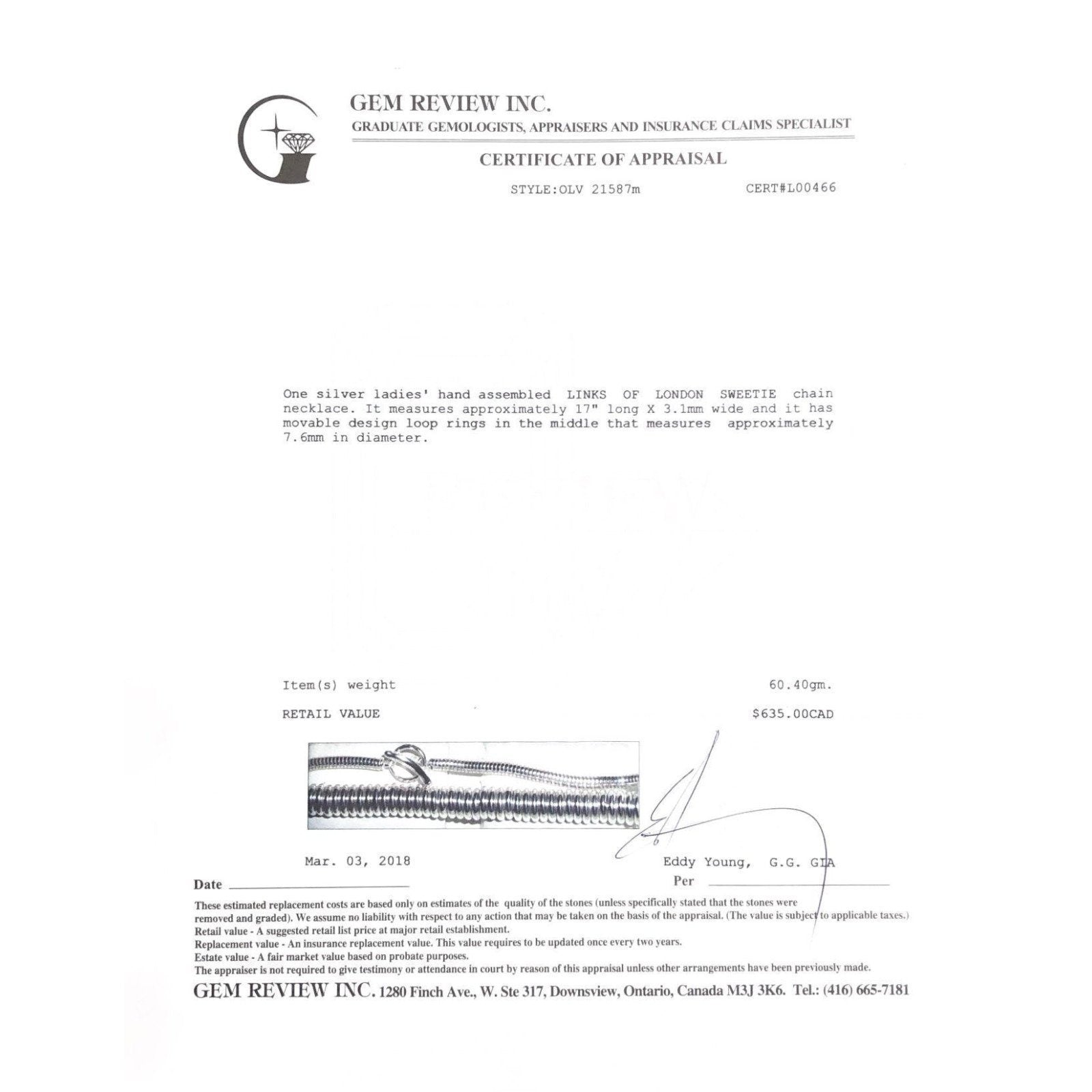 The necklace version of the signature sweetie bracelet. Sterling Silver rings on a sterling silver snake cord. Approximately 17" long x 3.1mm wide; Comes with Gem Review Apprasial