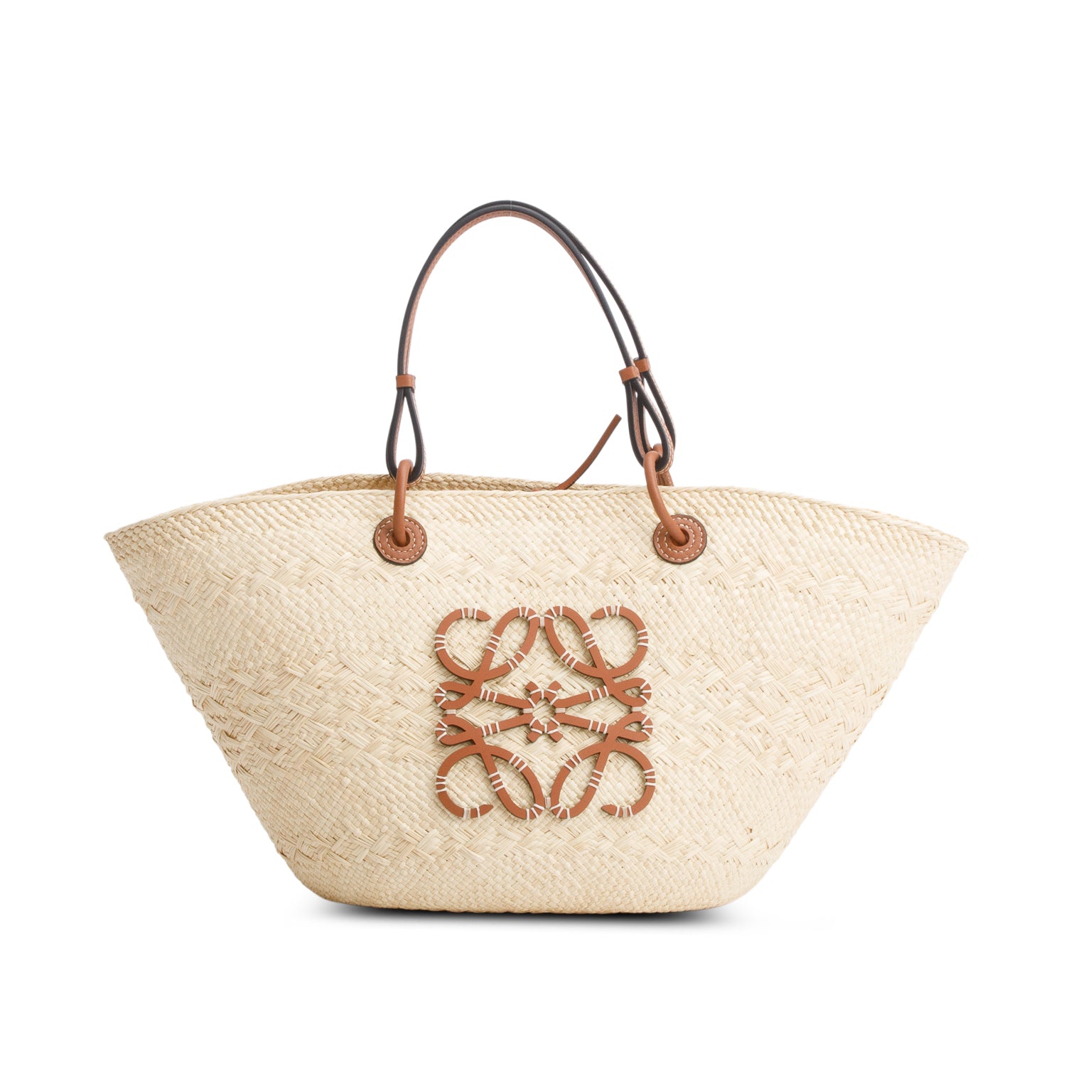 2023 Calfskin Raffia Paulas Ibiza Medium Anagram Basket Tote Bag