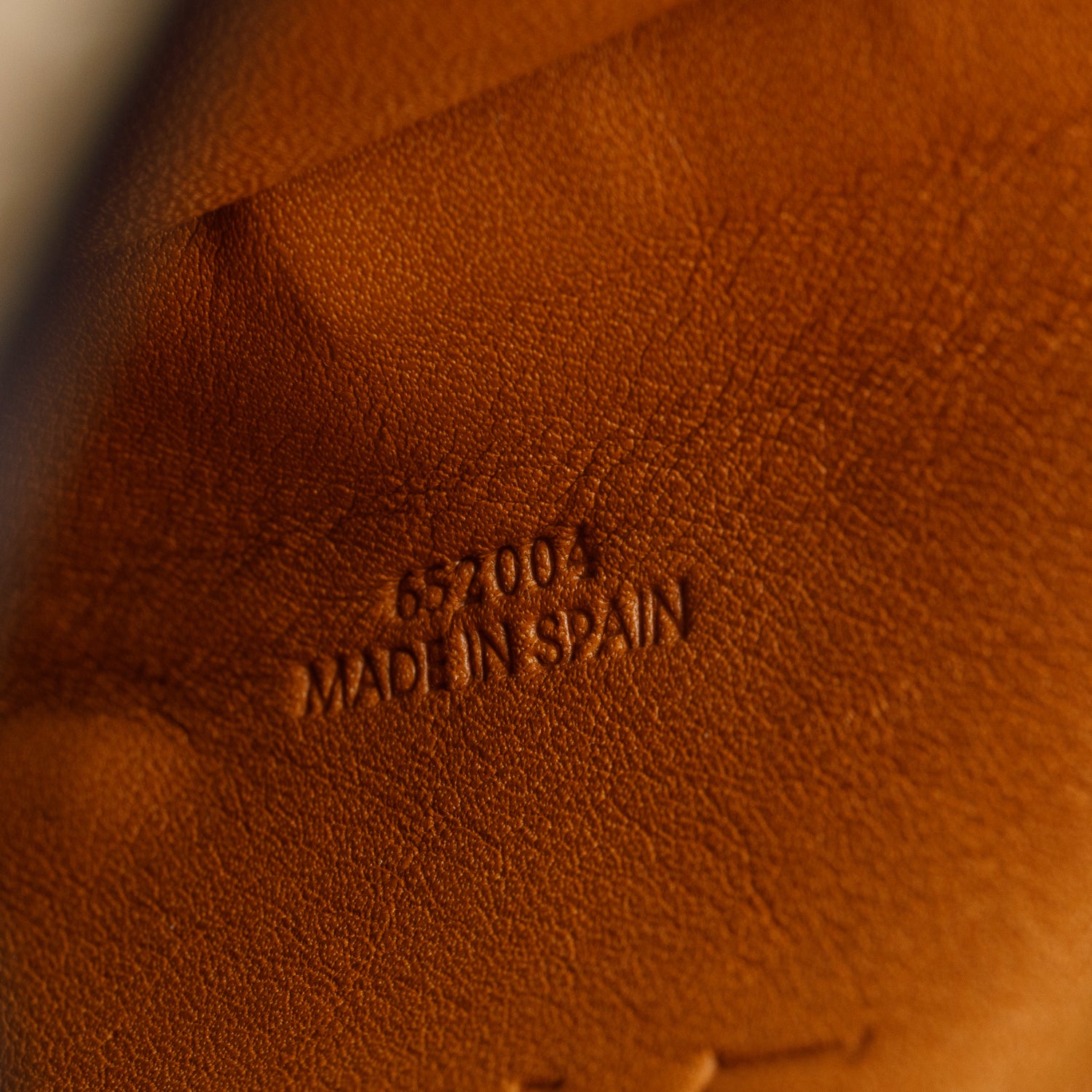 Condition: Very Good; some creasing at exterior and interior leather; slight creasing at strap.