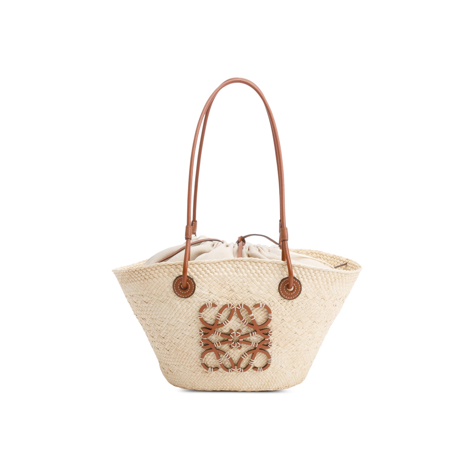 Neutral Iraca Palm Tan Leather Small Basket Bag