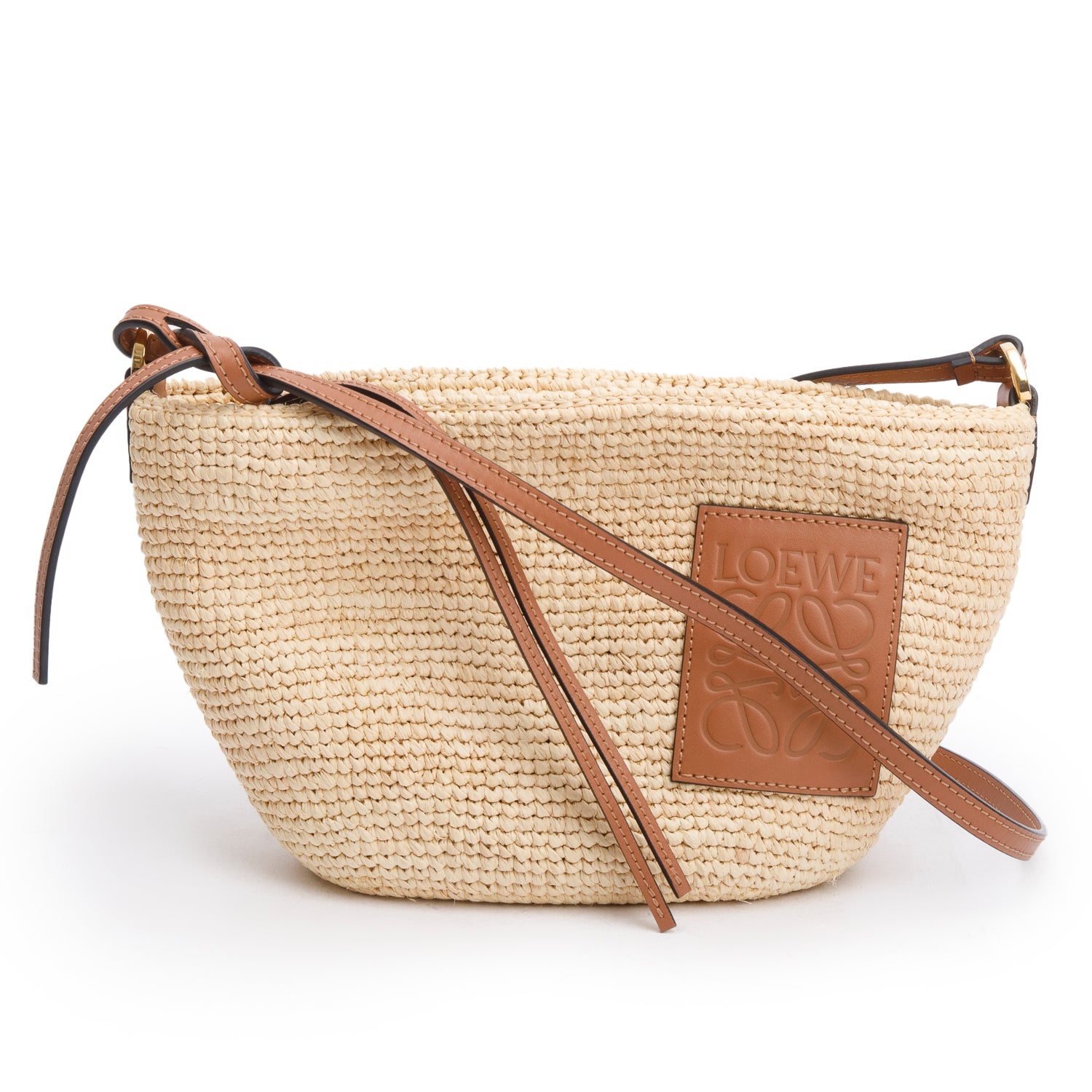 Condition: Very Good; slight wear at exterior raffia; slight creasing at strap; clean interior.
