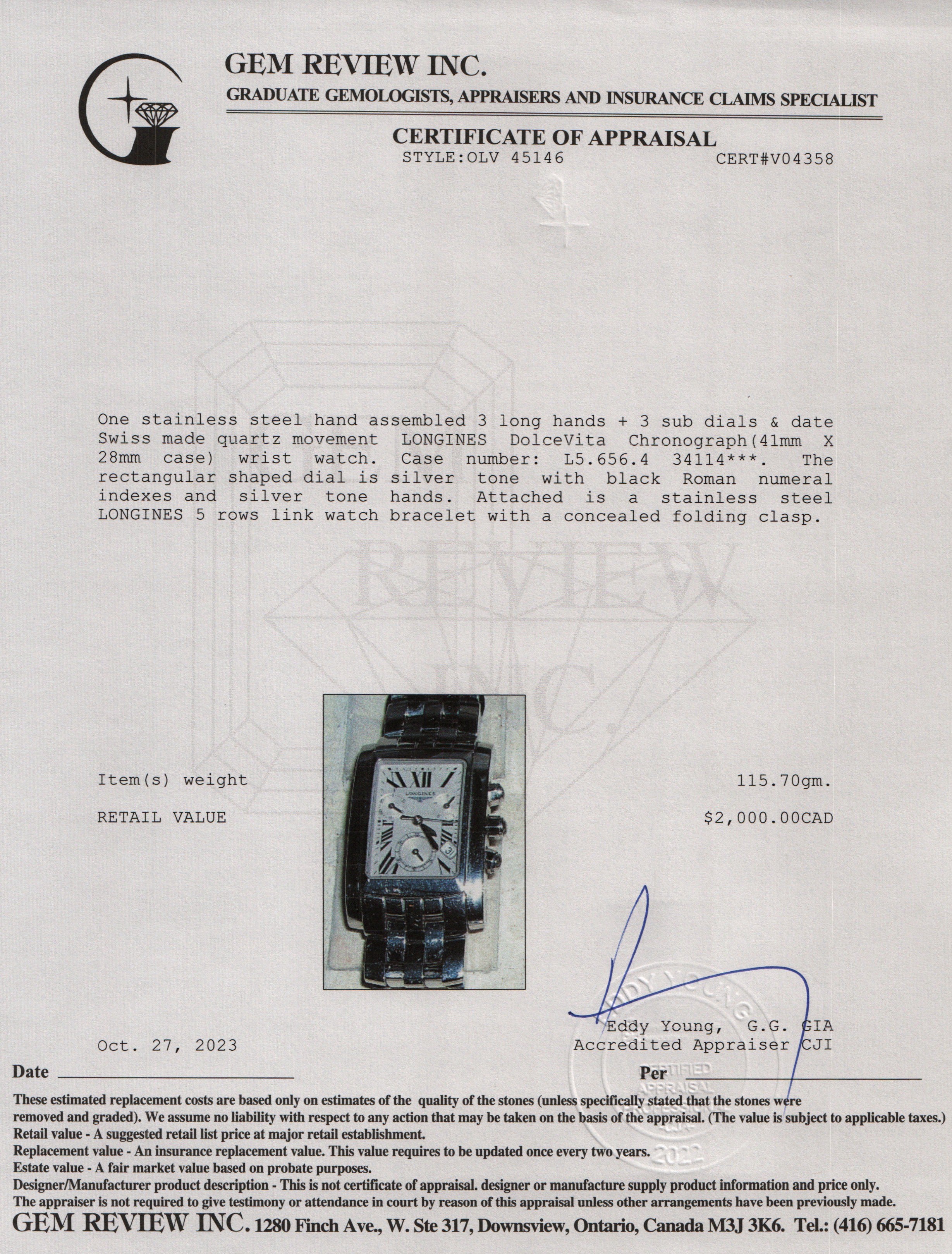 Stainless Steel DolceVita 28 MM Chronograph Quartz Watch w/ Box & Papers