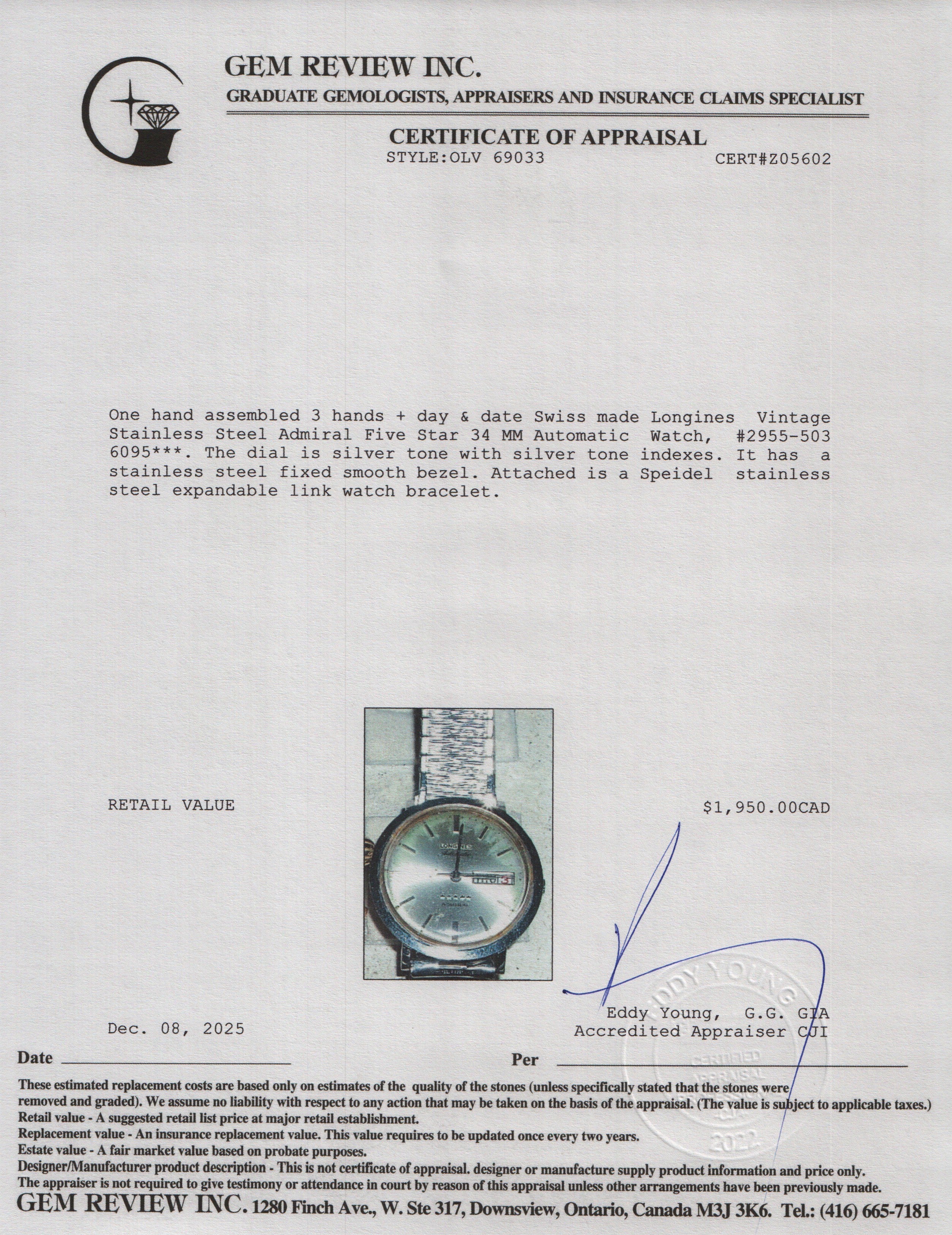 Vintage Stainless Steel Admiral Five Star 34 MM Automatic Watch