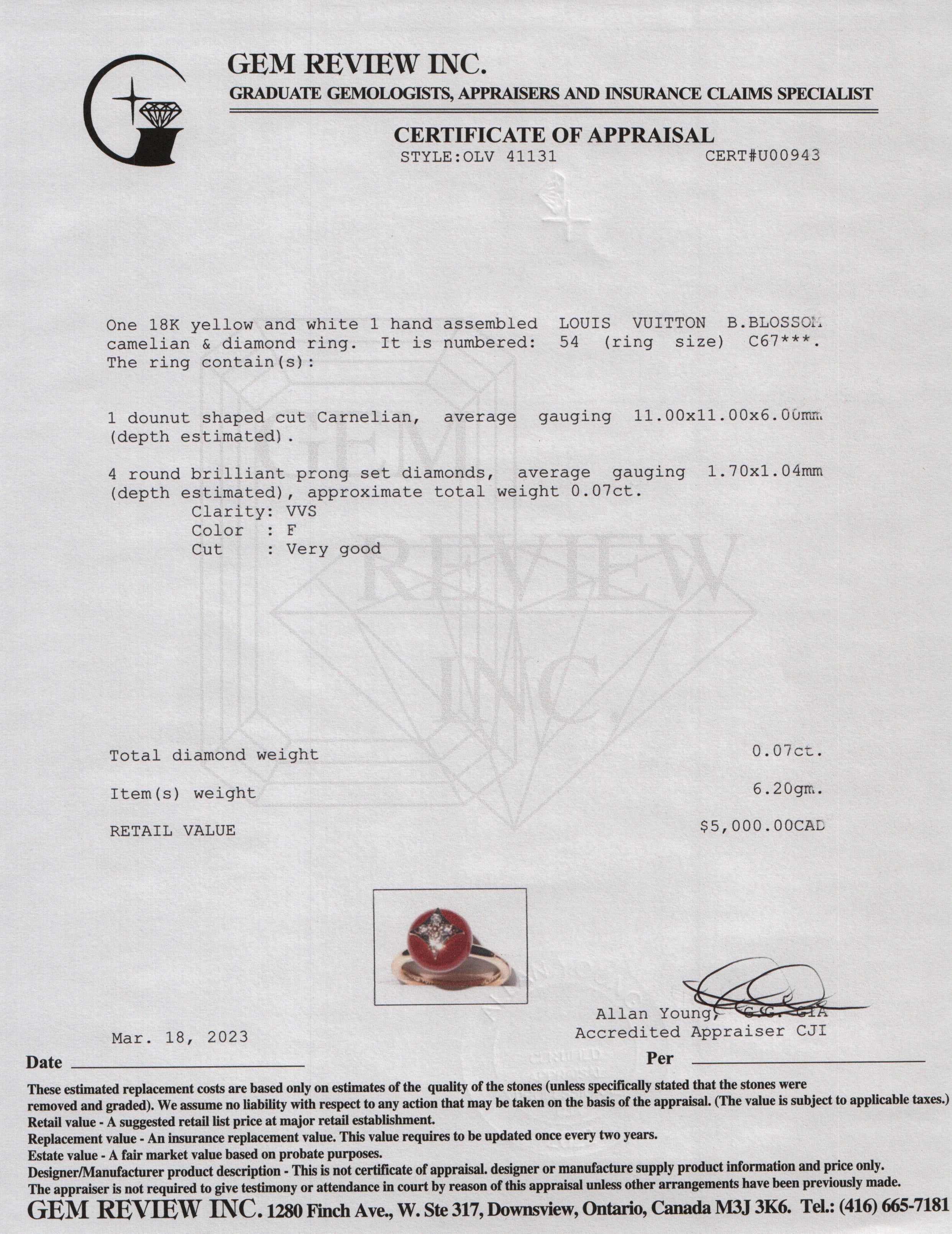 Louis Vuitton 18k Gold Carnelian & Diamond B. Blossom Ring