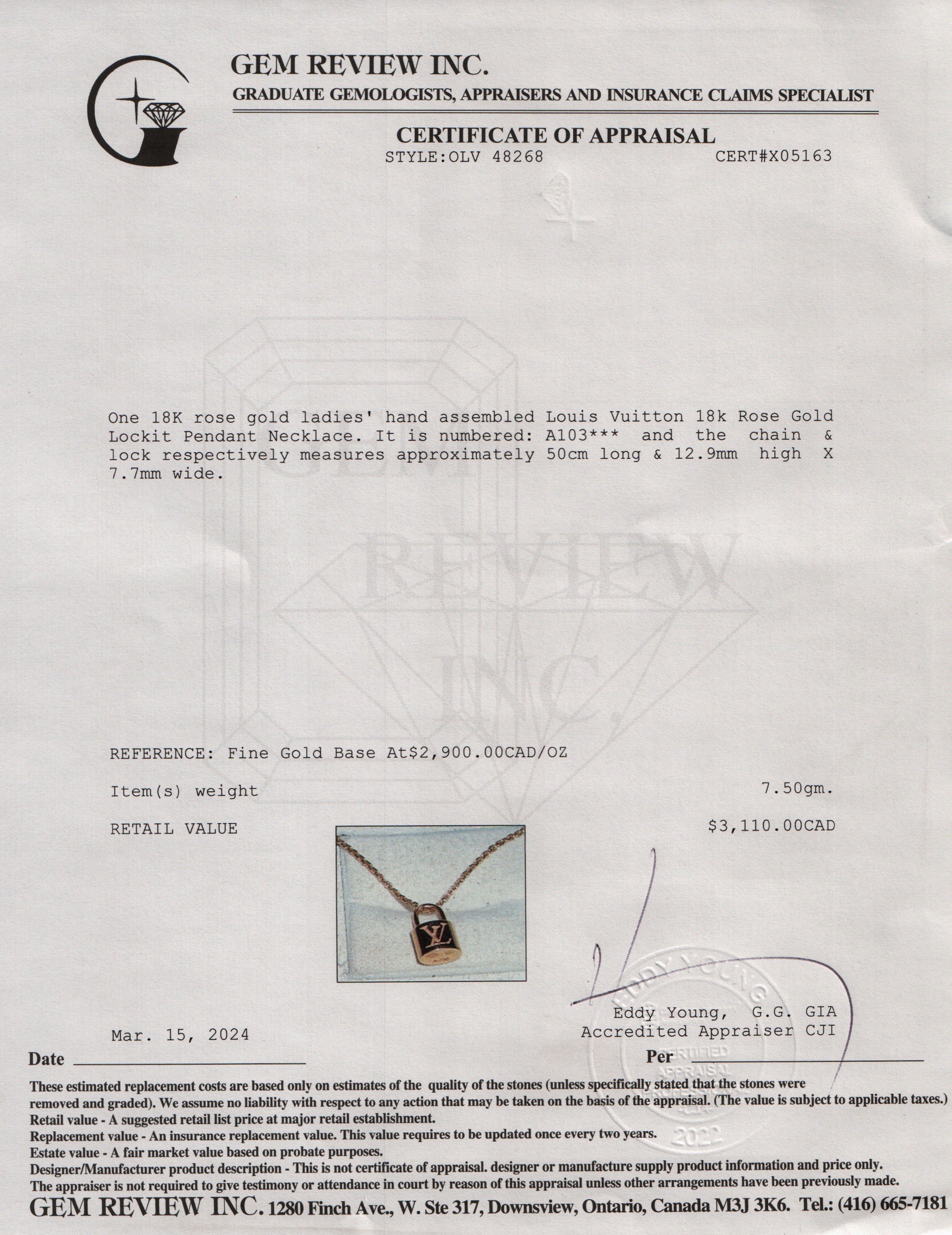 18k Rose Gold Lockit Pendant Necklace w/ Box