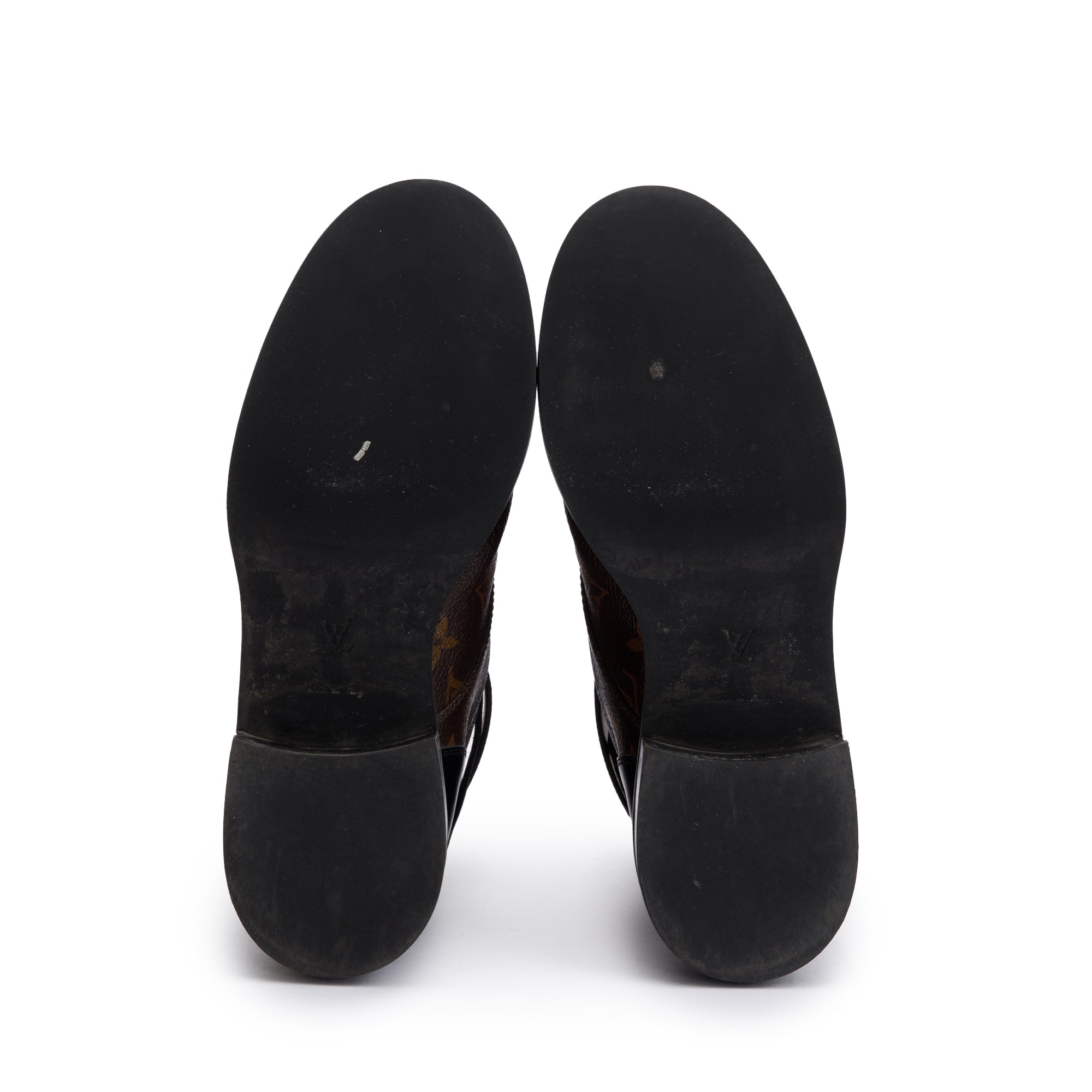 2020 Monogram Black Leather Wonderland Flat Ranger Boots, Size 9