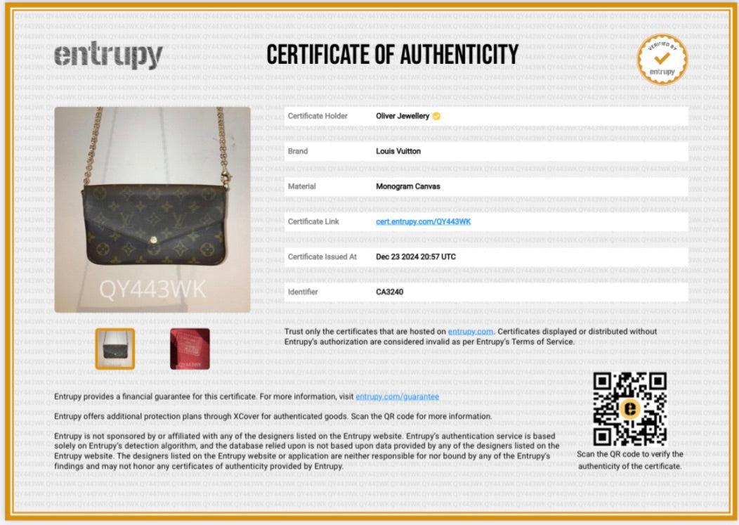 Inserts, Strap, Entrupy Certificate of Authenticity