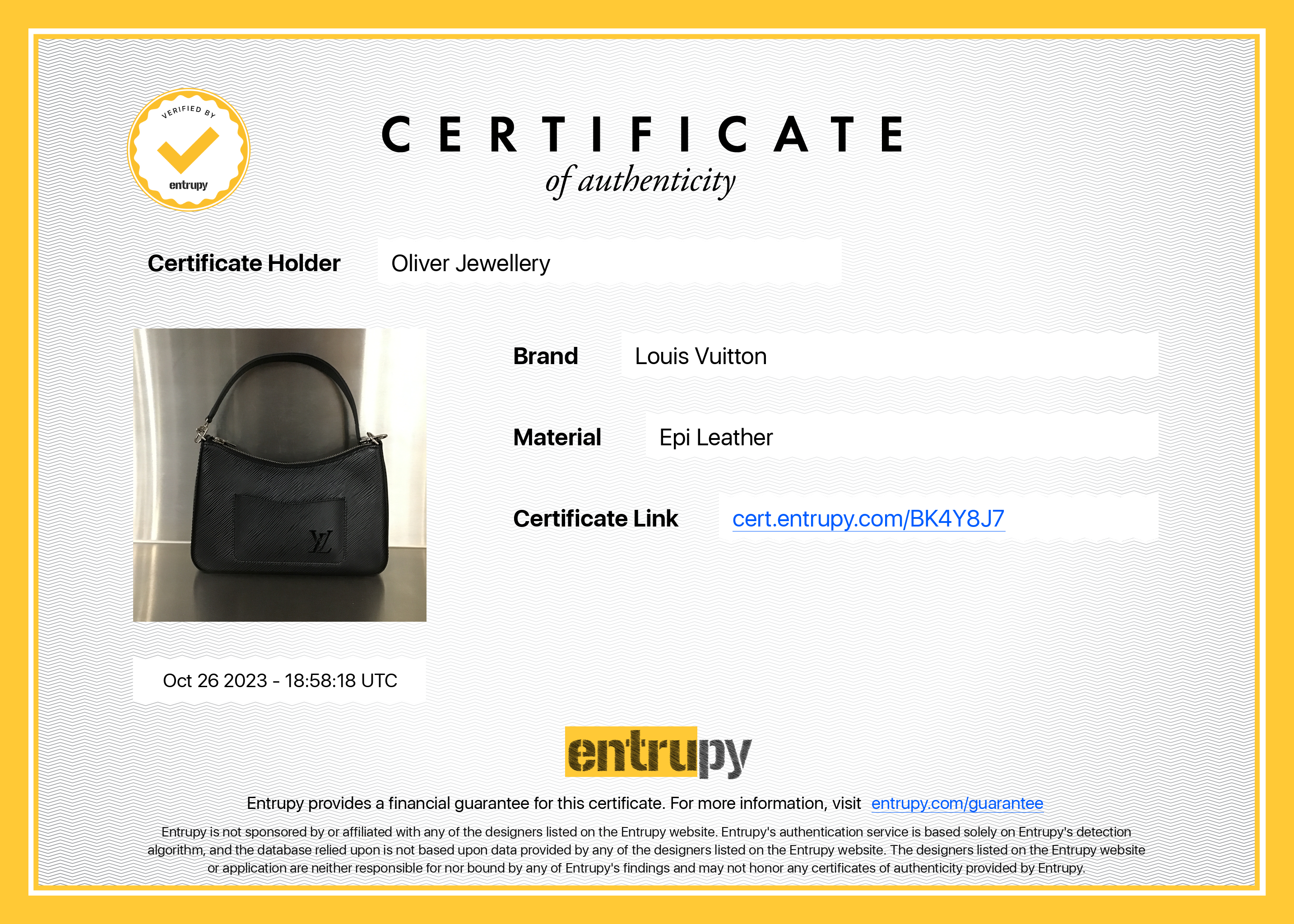 Box, Detachable Straps, Detachable Zip Pouch, Entrupy Certificate of Authenicity