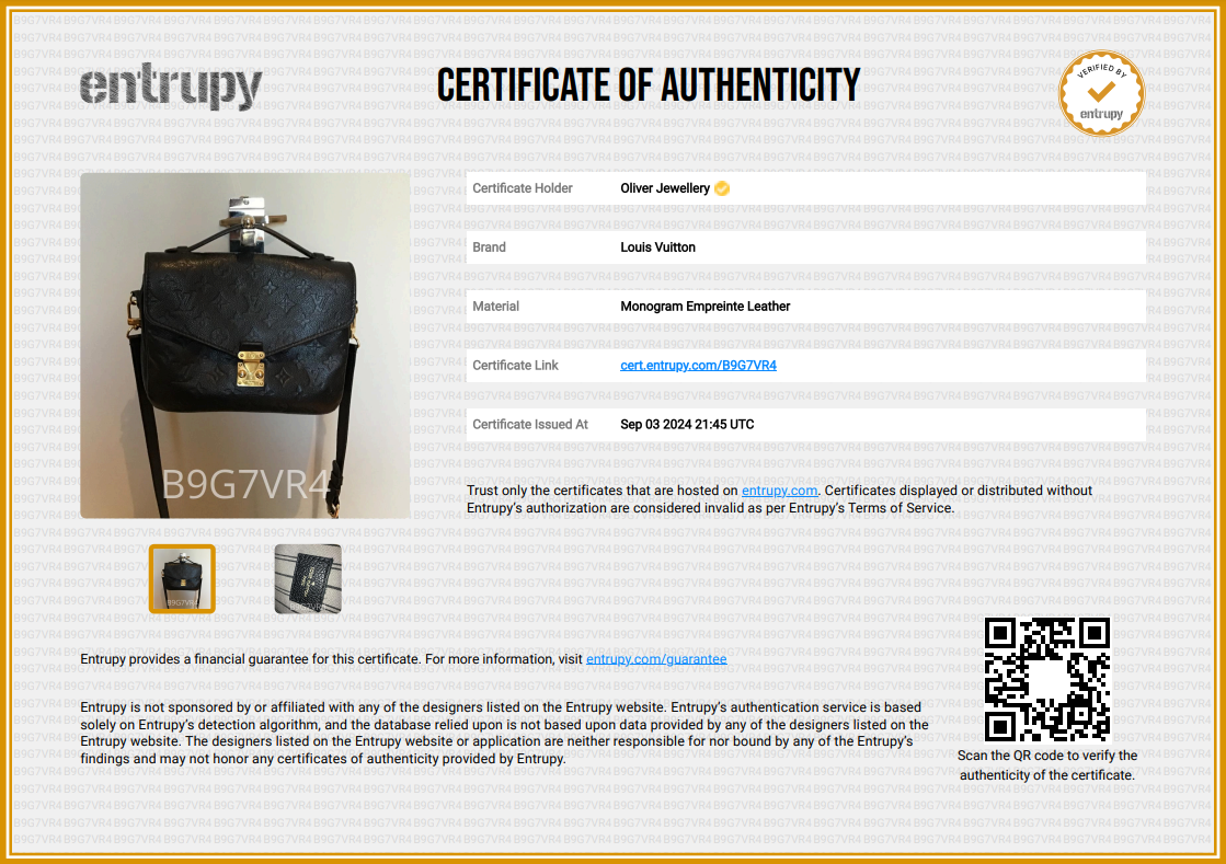 Dust Bag, Detachable Strap, Entrupy Certificate of Authenticity