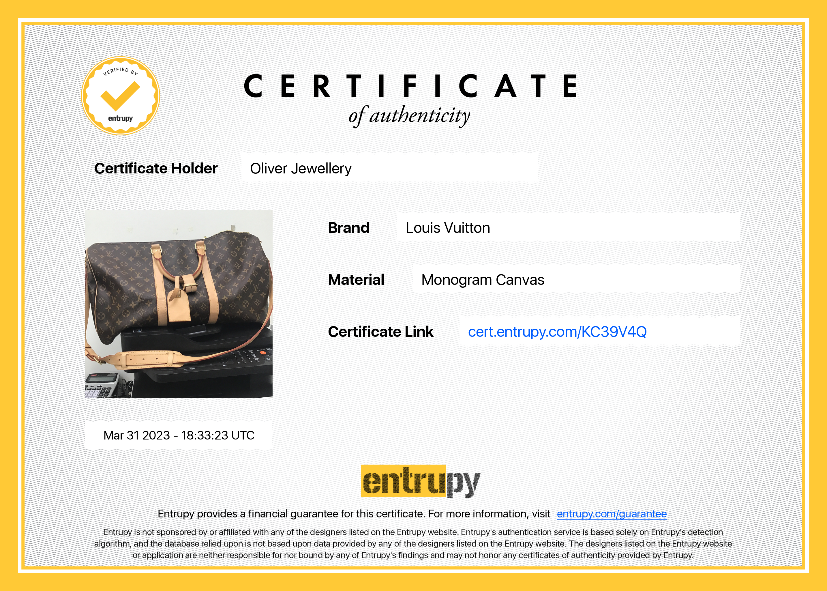 Included Items: Entrupy Certificate of Authenticity #: KC39V4Q