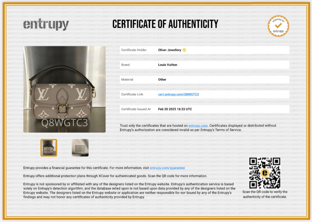 Box, Dust Bag, Receipt, Straps, Entrupy Certificate of Authenticity