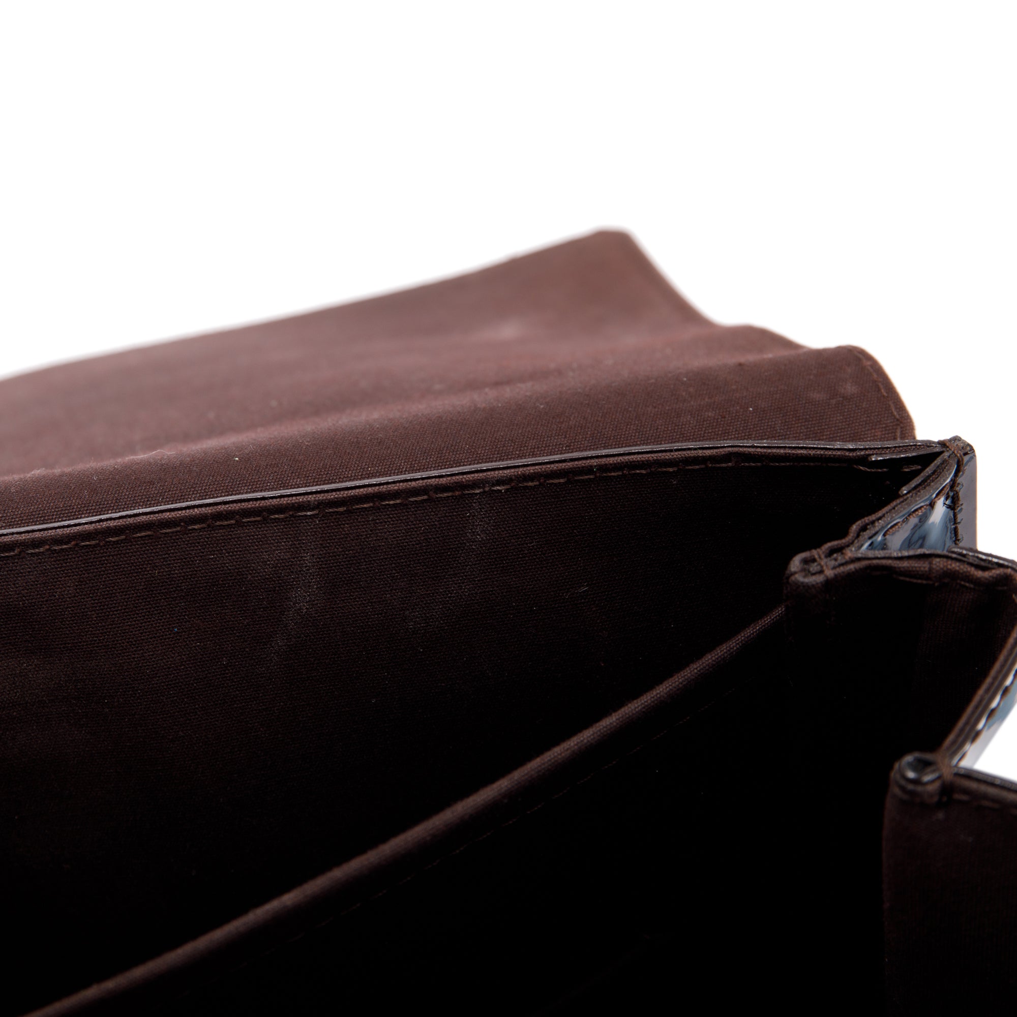 Condition: Very Good; slight surface scratches at hardware; slight marks at exterior vernis leather; light marks at interior